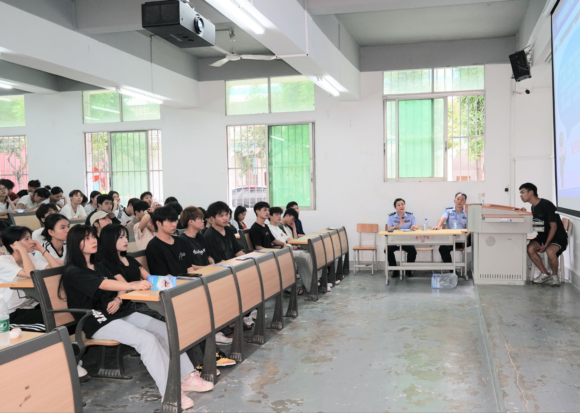 [本网讯]为推动党建工作与业务工作的融合,将“为师生办实事”落到实处,进一步增强师生防范网络电信诈骗安全意识,预防和减少电信诈骗案件的发生,真正让师生们了解网络安全对日常生活的重要意义。6月21日下午,财务处党支部联合中国农业银行民族支行、兴宁区派出所在第一教学楼1-6教室开展了防范网络电信诈骗宣传活动。此次活动由兴宁区派出所的民警同志们进行宣讲,参与宣讲活动的师生人数达150多人。