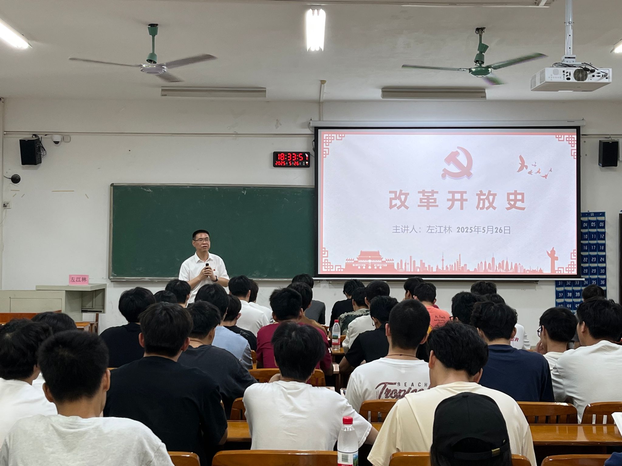 [本网讯]为进一步加强入党积极分子的思想政治教育,引导他们深入学习改革开放史,传承红色基因,坚定理想信念,5月26日,电力工程学院开展“奋进新征程 感悟改革开放伟力”改革开放史专题党课。本次党课由电力工程学院院长左江林主讲,2025年全体入党积极分子参加。