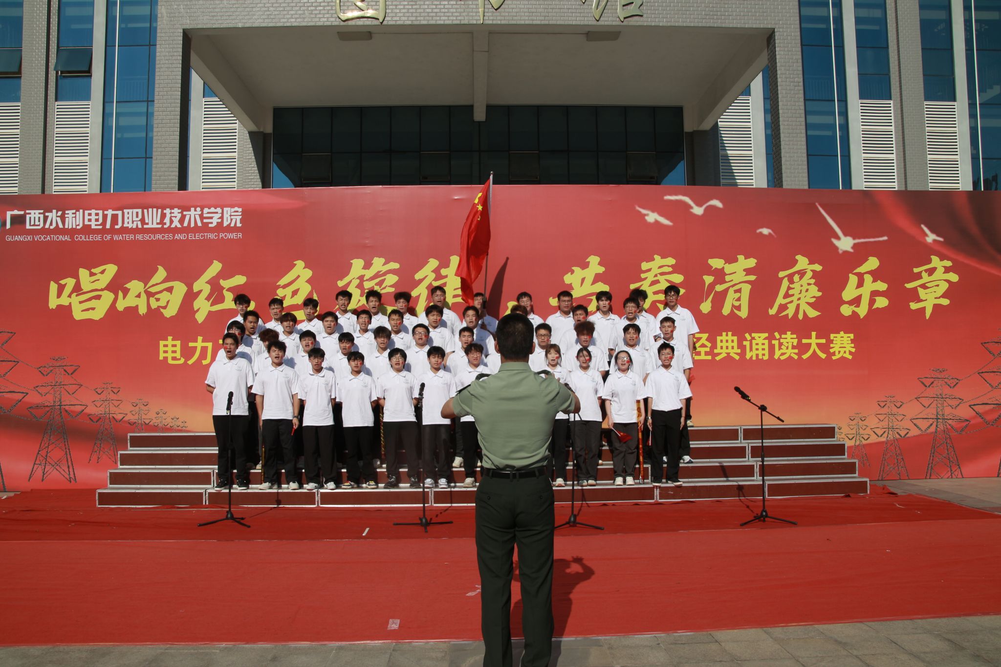 为弘扬爱国主义精神,丰富校园文化生活,11月1日下午,电力工程学院在里建校区图书馆广场成功举办了“唱响红色旋律,共奏清廉乐章”新生杯红歌合唱大赛暨中华经典朗诵大赛。电力工程学院党总支书记罗宇强及辅导员代表出席本次活动。