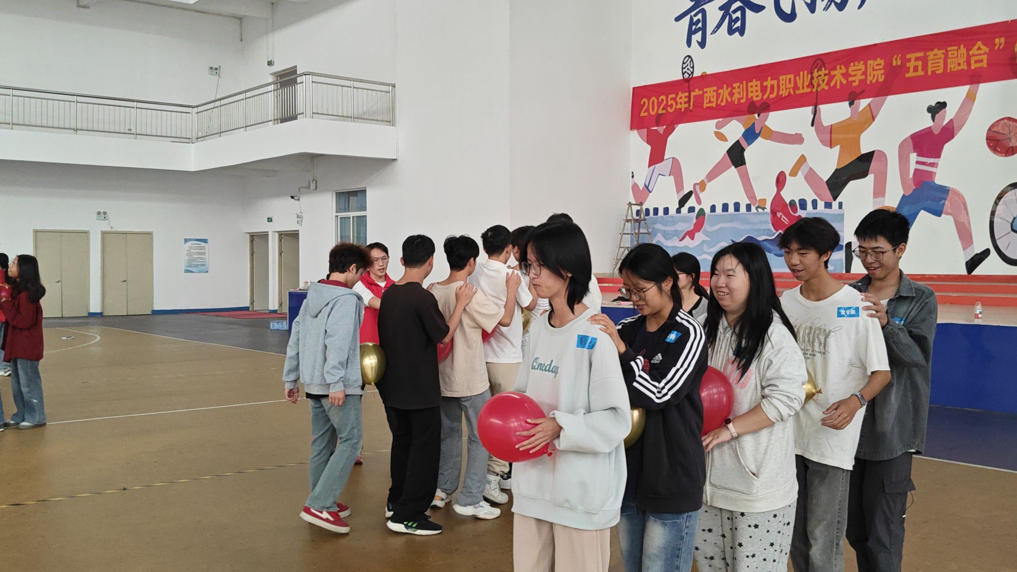活动流程丰富紧凑,从名字接龙破冰热身开始,迅速打破了成员间的陌生感,让大家在轻松互动中快速熟悉彼此。随后的悄悄话传递环节考验着团队默契,充满趣味的气球传递赛则让现场欢声笑语不断,氛围持续升温。各小组在口号及队伍造型设计环节集思广益、碰撞智慧,充分展现了团队创造力。最后的全体互动挑战环节,指导老师、学生负责人与同学们并肩参与游戏,进一步打破隔阂、拉近距离,在协作中深化信任与包容,凝聚起强大的团队力量。