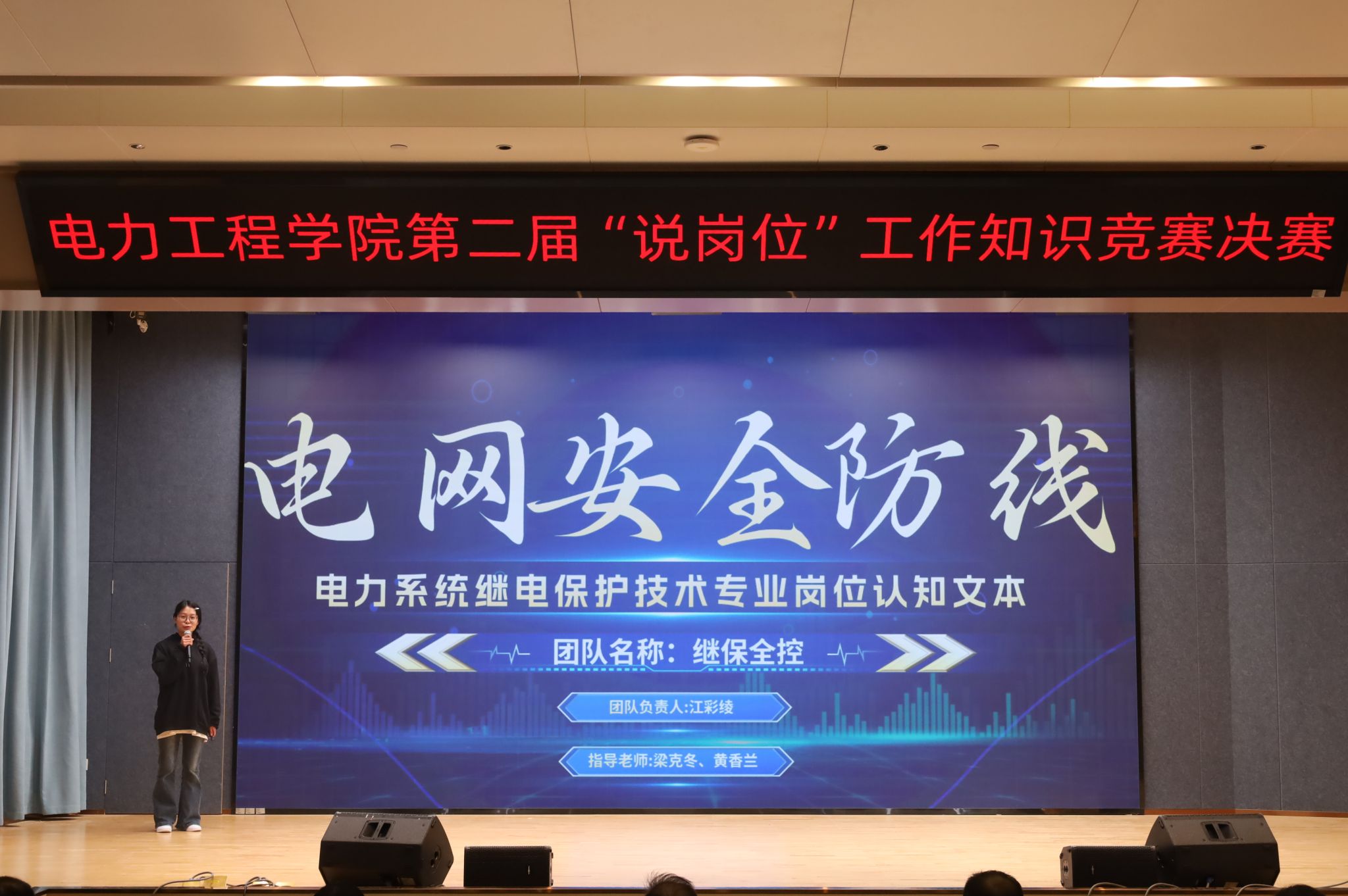 12月23日,电力工程学院第二届“说岗位”工作过程知识竞赛决赛在里建校区大学生活动中心多功能厅成功举办。电力工程学院党总支书记罗宇强、电力系统教学团队团长罗昕、电气工程管理教学团队团长黄志先、供用电技术教学团队团长林瑜以及80名师生来到现场观赛,共同见证10支晋级队伍的专业比拼与荣耀时刻。