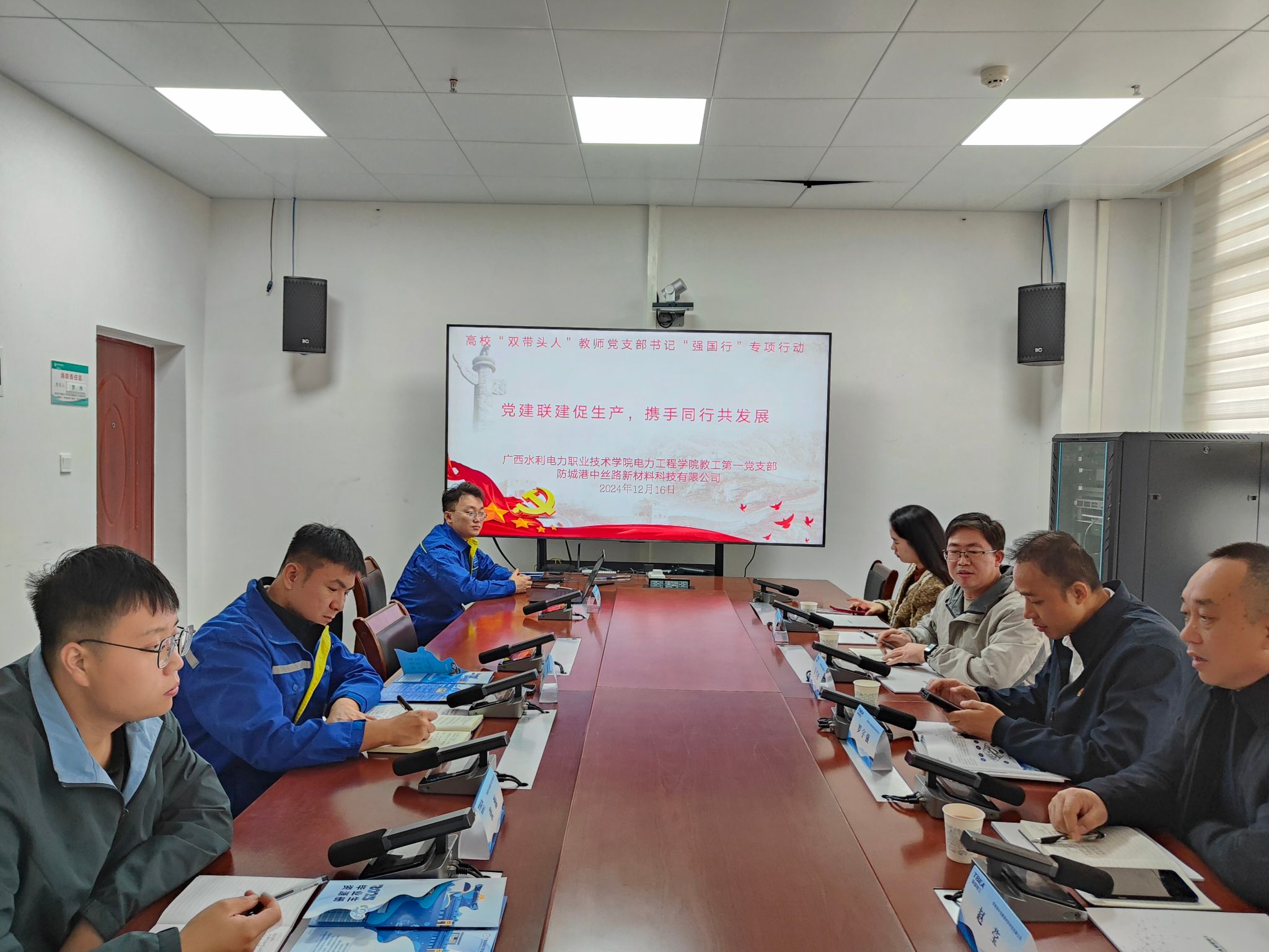 2024年12月16日,AC米兰官方网站电力工程学院教工第一党支部积极践行“强国行”服务企业发展理念,组织党员队伍前往广西防城港市中丝路新材料科技有限公司开展企业用人需求调研活动。此次调研得到了中丝路新材料科技有限公司人力部长丁建鹏、能源动力设备部处长李智国等领导的热情接待与积极参与。