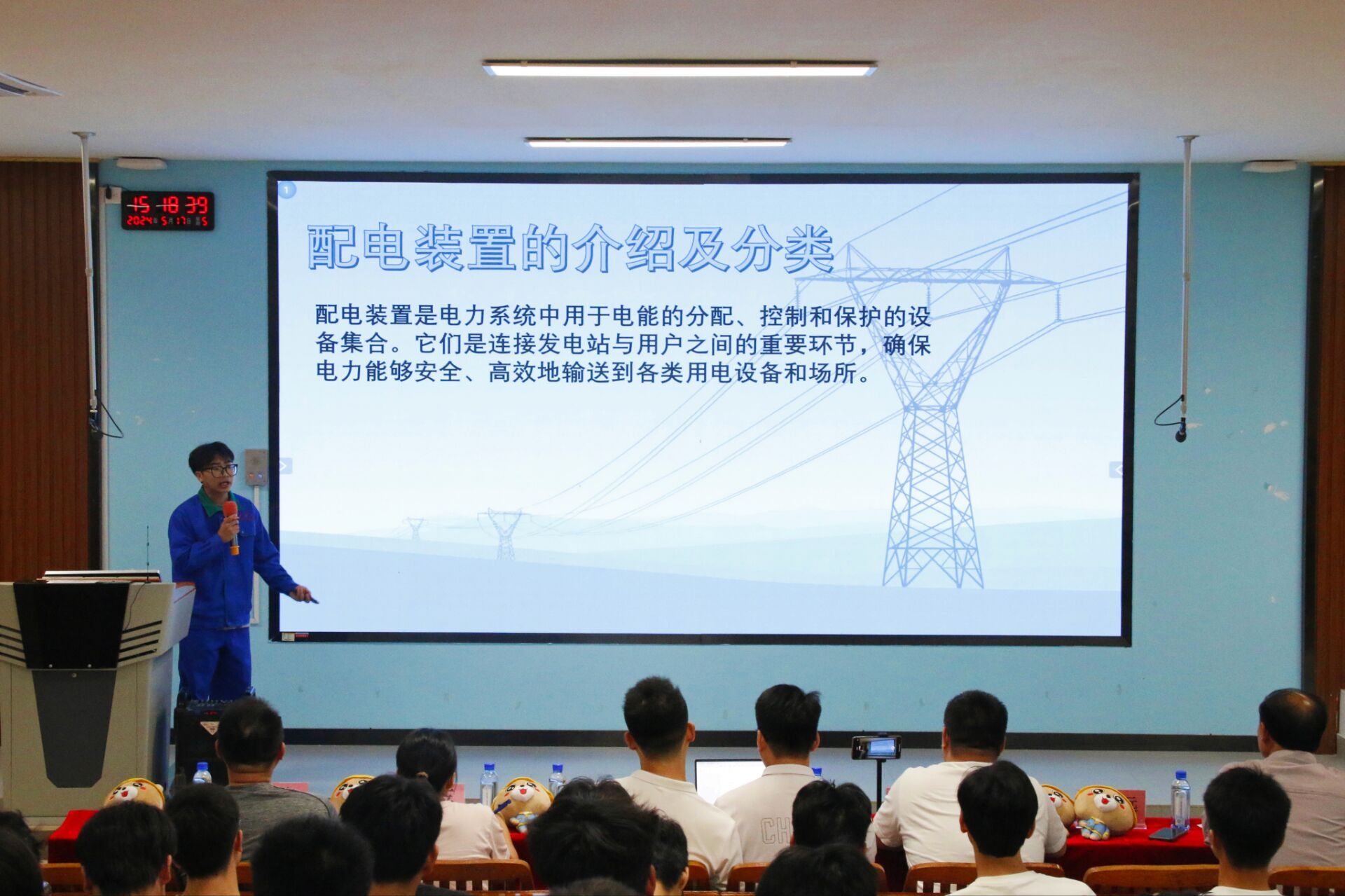 5月17日,电力工程学院双带头人工作室、团委学生会、电力科技协会、易班工作站携手在里建校区阶梯202教室开展电力实训设备讲解大赛决赛。活动吸引了电力工程学院专任教师、辅导员们和200余名学生前来观看。