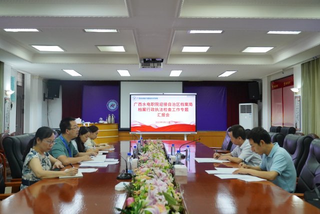 [本网讯]9月12日上午,广西壮族自治区党委办公厅(广西壮族自治区档案局)二级巡视员韦家友、档案事业发展和管理处副处长冯华一行到学校开展档案行政执法检查。学校校长李林、副校长周涛陪同检查。