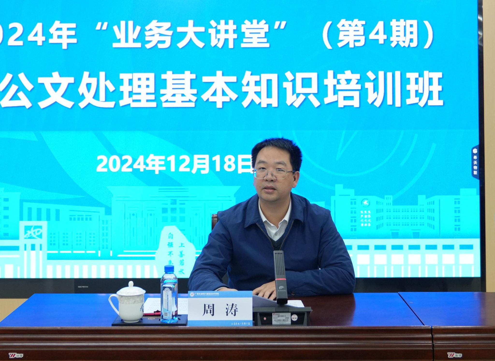 [本网讯]12月18日晚,学校在长堽校区举办“业务大讲堂”(第4期)——公文处理基本知识培训班。学校副校长周涛出席并主持本次培训班。