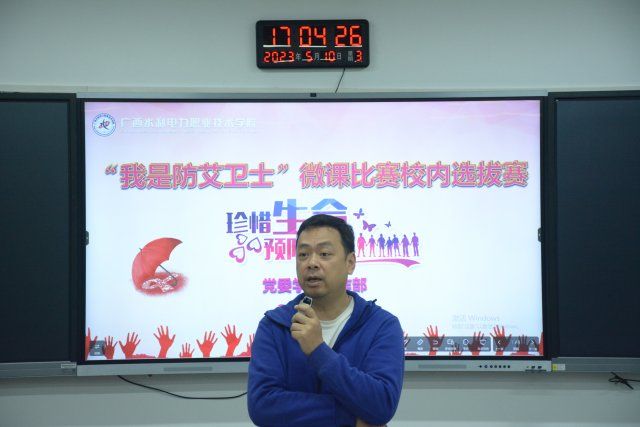 [本网讯]为进一步做好艾滋病防治工作,普及预防艾滋病知识,提高大学生自我保护意识,5月10日下午,党委学生工作部于长堽校区4教1-3教室举办以“我是防艾卫士”为主题的微课比赛校内选拔赛,党委学生工作部副部长杨骏出席活动,活动旨在提高师生自觉防艾的社会责任意识,做到知艾防艾,科普防艾知识。