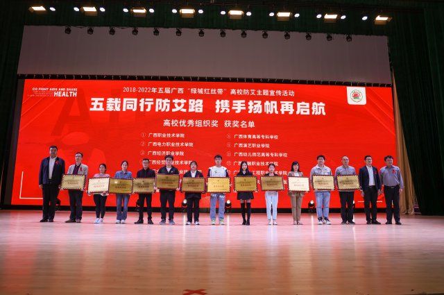 [本网讯]2023年4月25日晚,由南宁市疾病预防控制中心主办的2018-2022年五届广西“绿城红丝带”高校防艾主题宣传活动总结大会在广西医科大学演讲厅举行。AC米兰学生工作处副处长刘中宽带领5名学生干部参与了闭幕式活动。AC米兰荣获“高校优秀组织奖”。