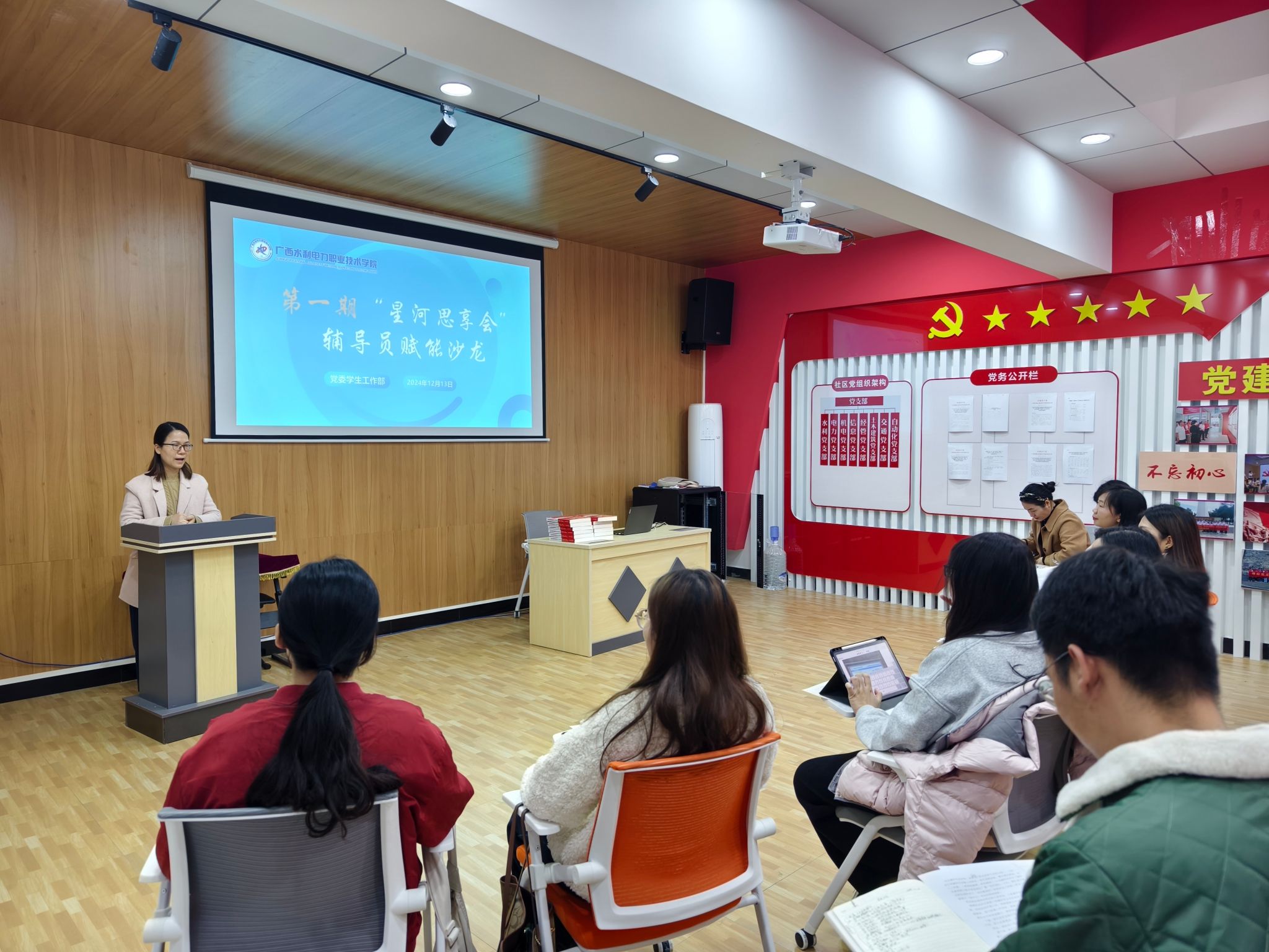 [本网讯]为切实加强辅导员队伍建设,不断提高辅导员队伍工作能力和业务水平,搭建、完善辅导员工作交流和素质提升平台。12月13日,党委学生工作部(学生工作处)在一站式学生社区举办“星河思享会”赋能沙龙,党委学生工作部(学生工作处)副部长(副处长)李泳出席活动,学校辅导员素质能力提升研修团队参加活动。