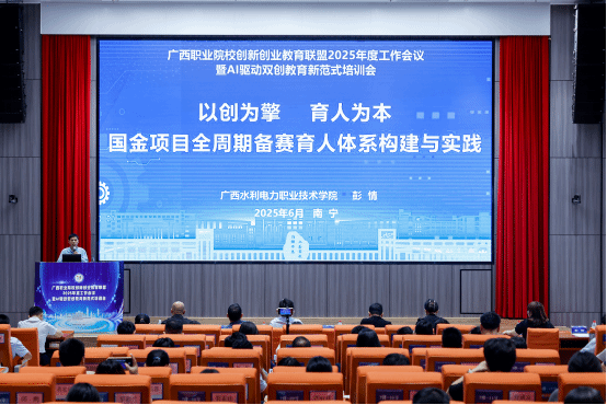 [本网讯] 6月20日,广西职业院校创新创业教育联盟2025年度工作会议暨AI驱动双创教育新范式培训会在广西电力职业技术学院举行。学校国赛金奖项目指导教师代表受邀作“以创为擎 育人为本——国金项目全周期备赛育人体系构建与实践”主题分享,获得参会人员的广泛好评。