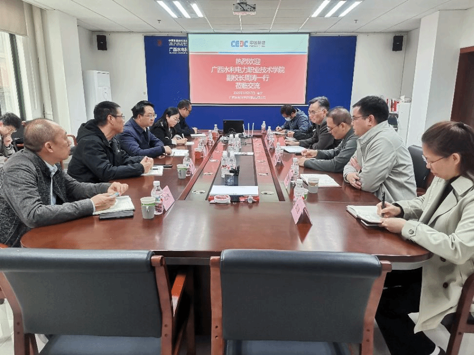 周涛介绍了学校的办学成果,并对公司一直以来对学校发展的支持表示感谢。他指出,公司扎根水电领域数十年,为广西的建设发展提供了重要支撑。他希望学校充分发挥人才优势作用,积极参与公司的科研项目,联合申报自治区科技研发平台,围绕人才培养和产教融合共同发力。