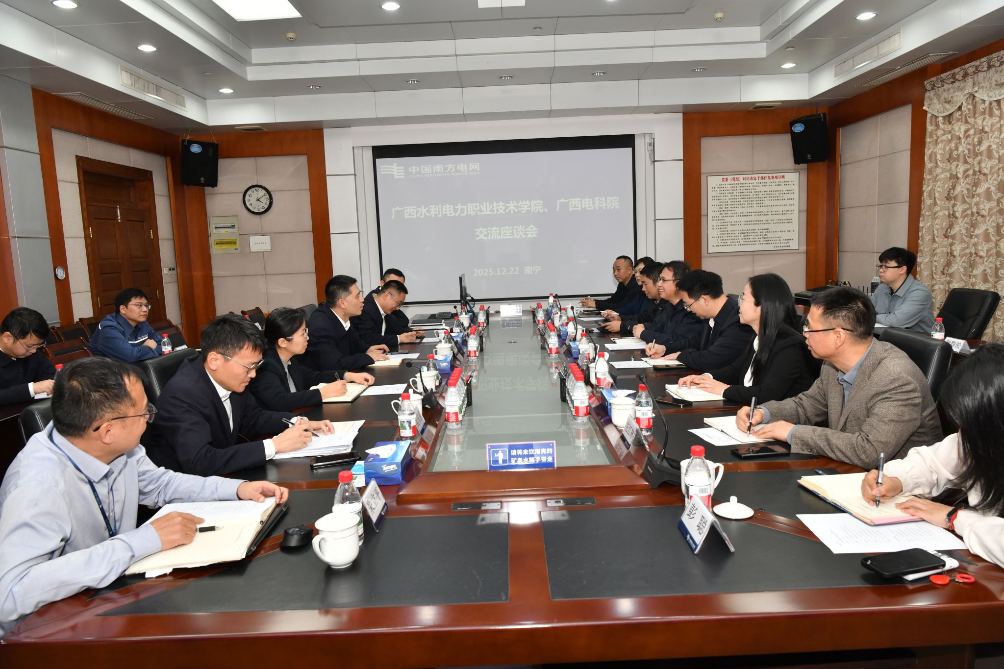[本网讯]12月22日下午,学校校长刘存香、副校长周涛率科研工作队伍一行10人,赴广西电网有限责任公司广西电力科学研究院开展调研交流。广西电力科学研究院总经理周柯全程陪同并参加座谈。