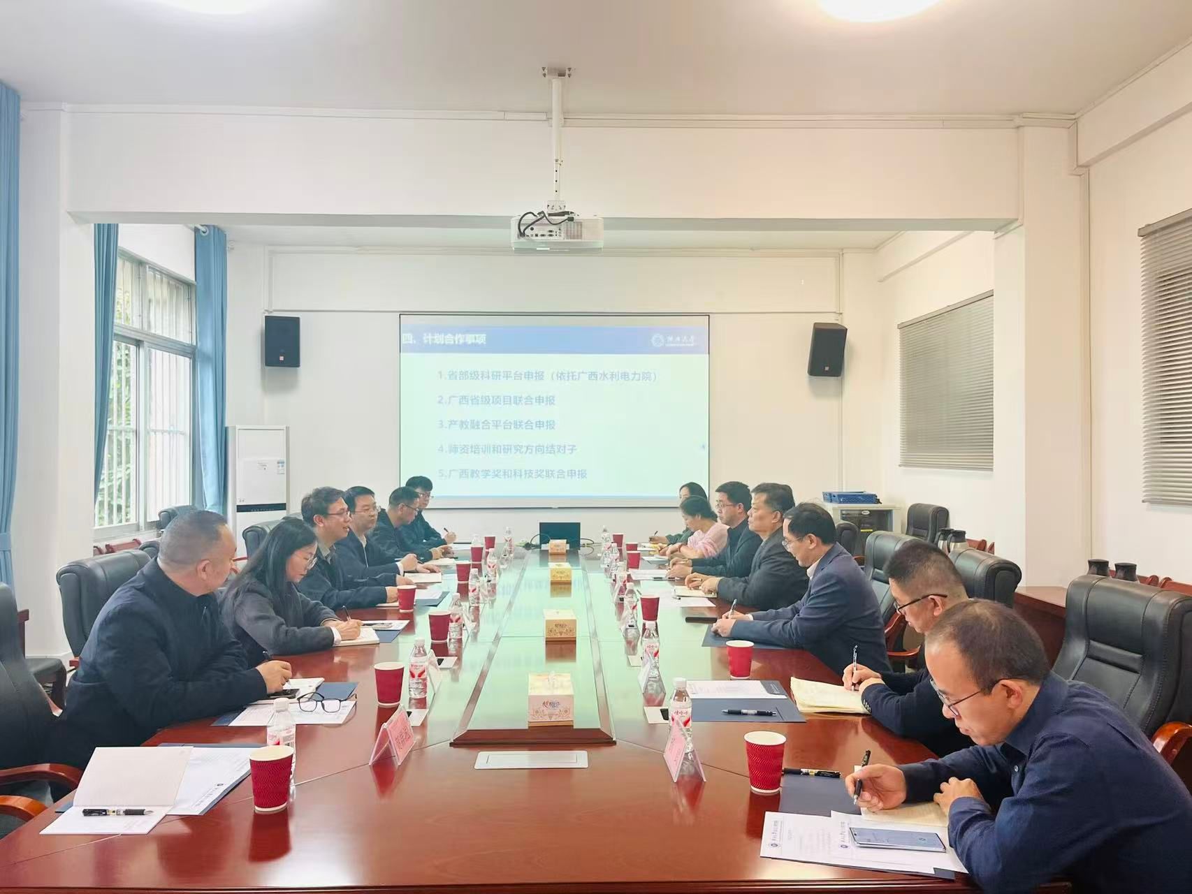 座谈会上,双方还就横向课题研究、人工智能相关场景应用、抽水蓄能技术研究、科技成果转化落地、师资培养等议题进行了深入交流,气氛热烈融洽。此次调研交流,进一步密切了学校与广西大学的联系,为提升学校科研水平、拓展技术服务领域提供了新思路。
