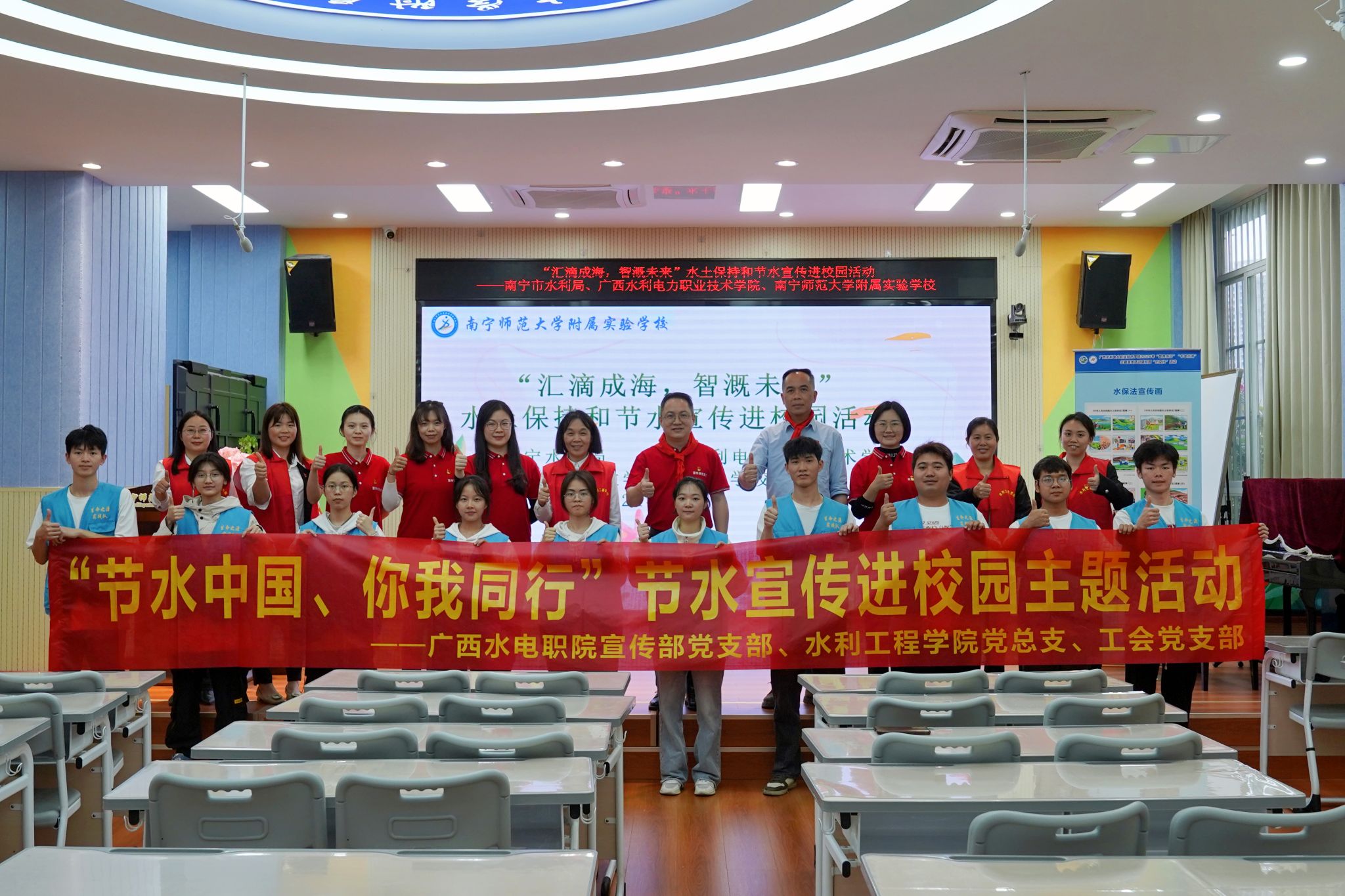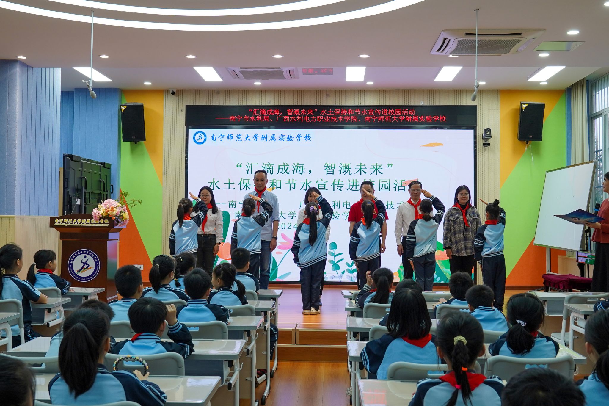 [本网讯]3月22日,在第三十二届“世界水日”,第三十七届“中国水周”来临之际,学校党委宣传部党支部、工会党支部、水利工程学院党总支携手南宁市水利局,共同走进南宁师范大学附属实验学校,成功举办了以“汇滴成海,智溉未来”为主题的水土保持和节水宣传进校园活动。此次活动旨在通过科普教育,提升青少年对水资源保护的认识,培养节水意识,传递绿色发展理念。