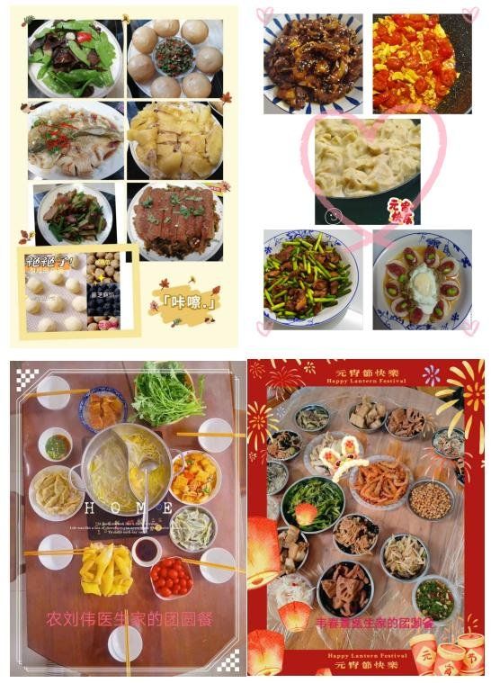 活动倡议得到了部门职工的积极响应,在喜庆团圆的月圆之夜,大家纷纷在后勤职工交流群里分享全家福合影、元宵团圆大餐。虽然大家身处四方,但是都展现了一团和气、两心相印、三口之家、四世同堂、和谐美好的团圆氛围。