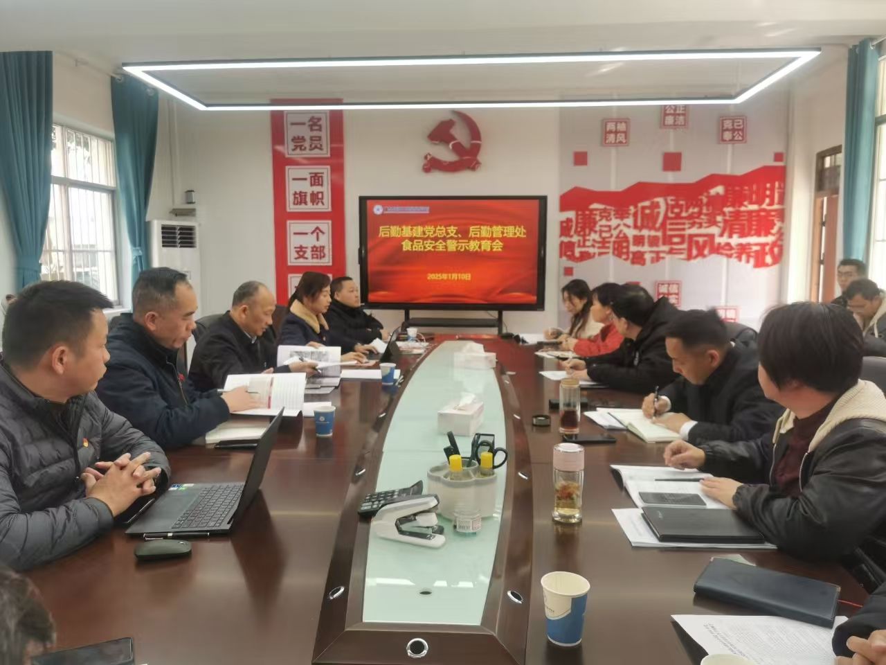 纪委办公室(纪检监察室)相关同志、后勤基建党总支全体党员、后勤管理处(保卫处)科级以上干部、食堂管理人员等参加活动。(潘桂芳/文 方汉葵/图)