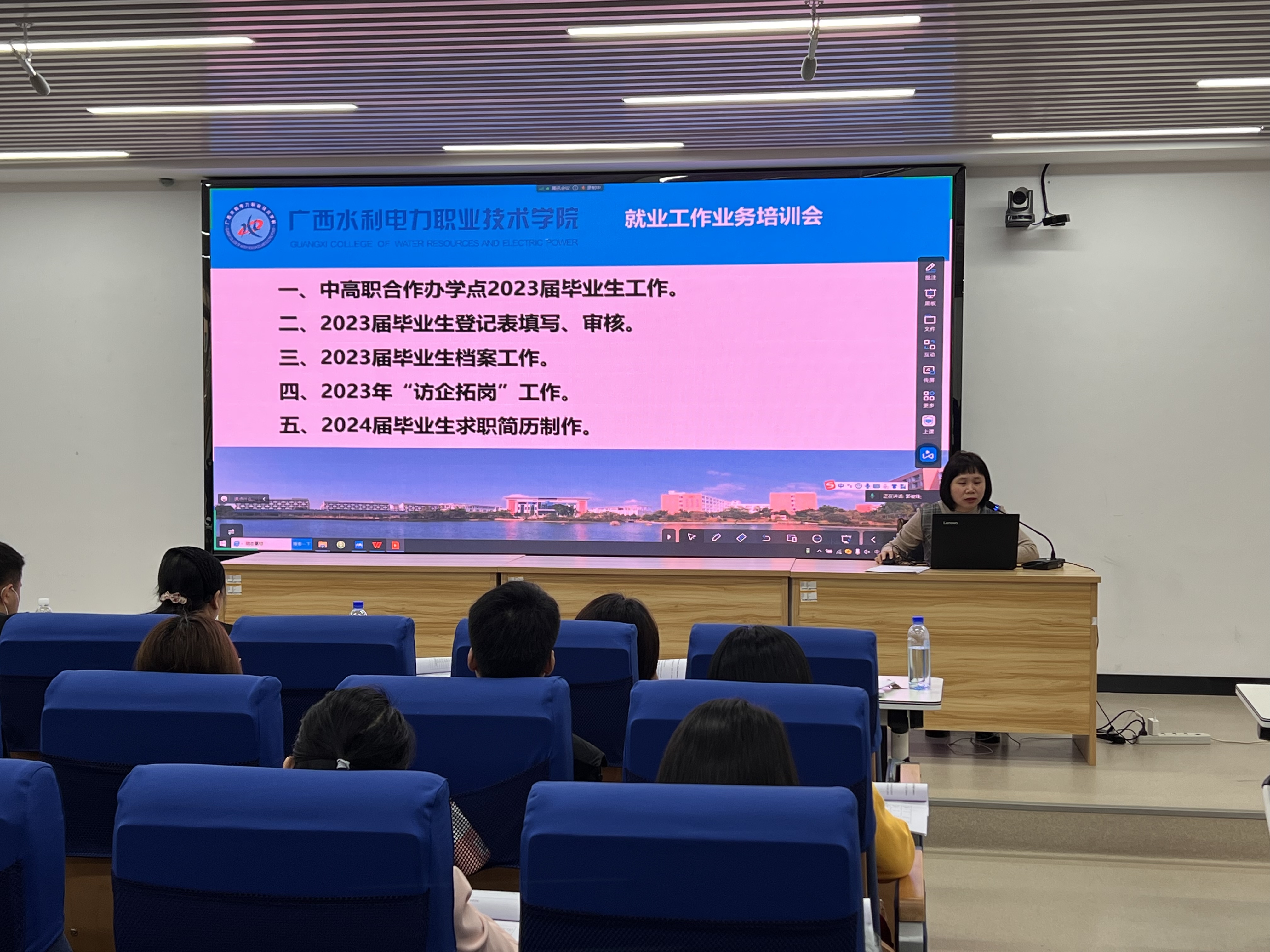 首先,招生与就业处的黄曦慧老师结合当前就业形势和学生就业的新特点分析了2023届毕业生就业工作要点。并从以下三个方面开展培训,一是解读了上级部门对2023届毕业生就业工作的要求,对二级学院的就业任务进行量化分析;二是明确就业证明材料规范要求及就业信息核查工作的标准,重点强调要坚守就业工作的底线,不能违反教育部对就业工作的“四不准”“三不能”及“三不得”的要求;三是详细介绍教育厅就业系统的使用及上报要求。