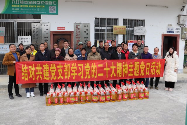 [本网讯]为深入学习宣传贯彻党的二十大精神,不断推动党的二十大精神理论宣讲走深走实,2月15日马克思主义学院党支部一行6人前往河池市金城江区九圩镇肯堂村开展党的二十大精神理论宣讲暨基层党支部结对共建活动,并对学校驻村第一书记和村民党员同志进行慰问。