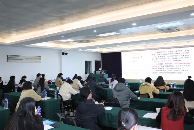 [本网讯]为做好校级教育教学成果奖的申报工作,帮助教师熟悉学术期刊的选稿特点与要求,有效提升成果申报与论文撰写的质量,提高论文发表成功率,马克思主义学院于2023年1月5日举办“教学成果培育、学术论文写作与发表”专题研讨会。南宁师范大学王屹教授、《广西社会科学》杂志副总编黎伟盛研究员应邀现场作讲座,学院全体教师参加。