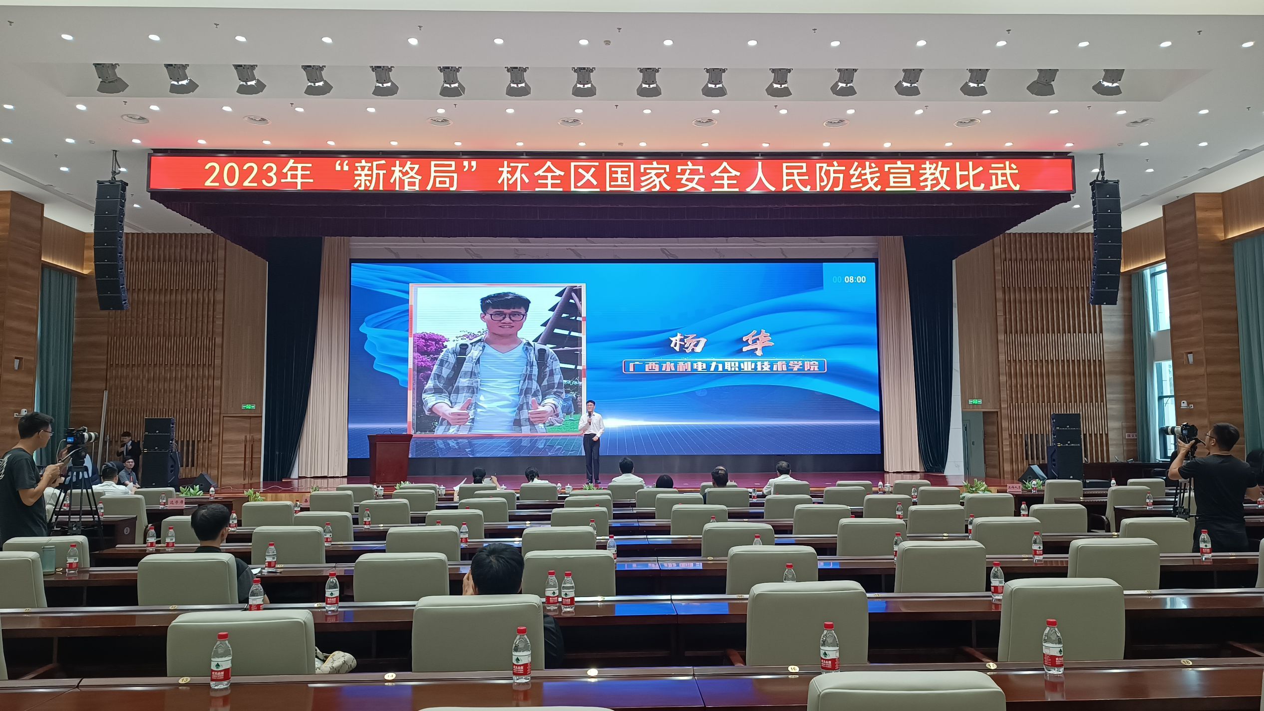 [本网讯]8月24—25日,由广西国家安全人民防线工作领导小组办公室主办的2023年度全区“新格局”杯国家安全人民防线宣教比武在南宁举办,各市防线办及驻邕区(中)直单位选送共60名优秀选手参加。AC米兰马克思主义学院教师杨华、张丛磊代表广西水利厅参赛,分别获得优胜奖和风采奖。