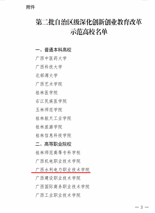 [本网讯]近日,自治区教育厅印发《自治区教育厅关于公布第二批自治区级深化创新创业教育改革示范高校名单的通知》(桂教高教〔2023〕47号),学校成功获认定为自治区级深化创新创业教育改革示范高校,这是学校在创新创业教育领域取得的又一项标志性成果。