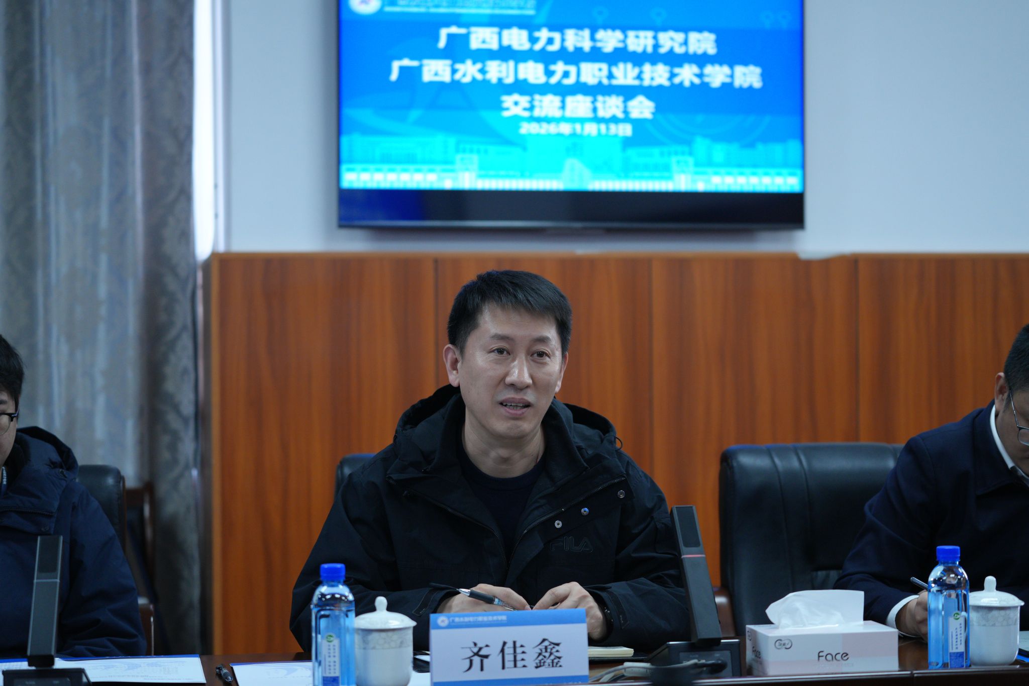 齐佳鑫代表广西电网有限责任公司电力科学研究院对学校的热情接待表示感谢。他高度肯定学校实训设施的硬核实力与学科专业的深厚底蕴,并表示双方应充分发挥各自优势,围绕智能电网状态感知、智慧电网、设备智能化等关键技术问题,携手组建协同创新团队,联合开展科研攻关。