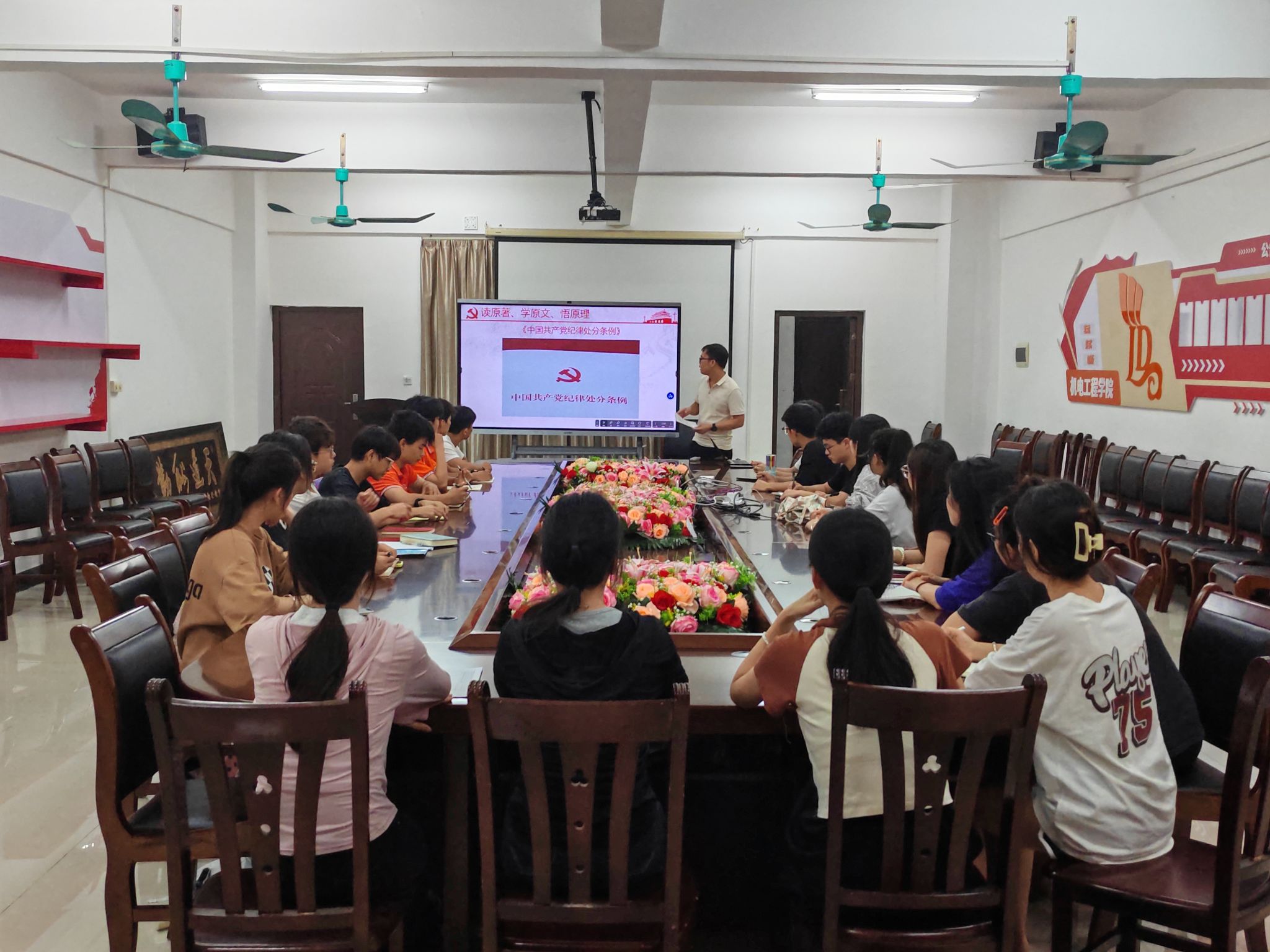 此次培训采取集中授课、案例教学、专题研讨、观看红色影片、学员自学等板块相结合的方式,旨在提高学员的党性修养、端正学员的入党动机。案例教学部分,肖芬老师用生动案例详细解析了发展党员具体环节、基本要求及常见问题。发展对象主要从“树立正确的入党动机”“做有志气、有骨气、有底气的新时代青年”“树立正确的世界观、人生观、价值观”这三个方面开展专题研讨,进一步筑牢理想信念之基。支部组织委员罗贤泰老师组织学员观看《奋斗新的伟业》系列节目、集中学习《中国共产党纪律处分条例》,推动党的理论学习内化于心、外化于行。