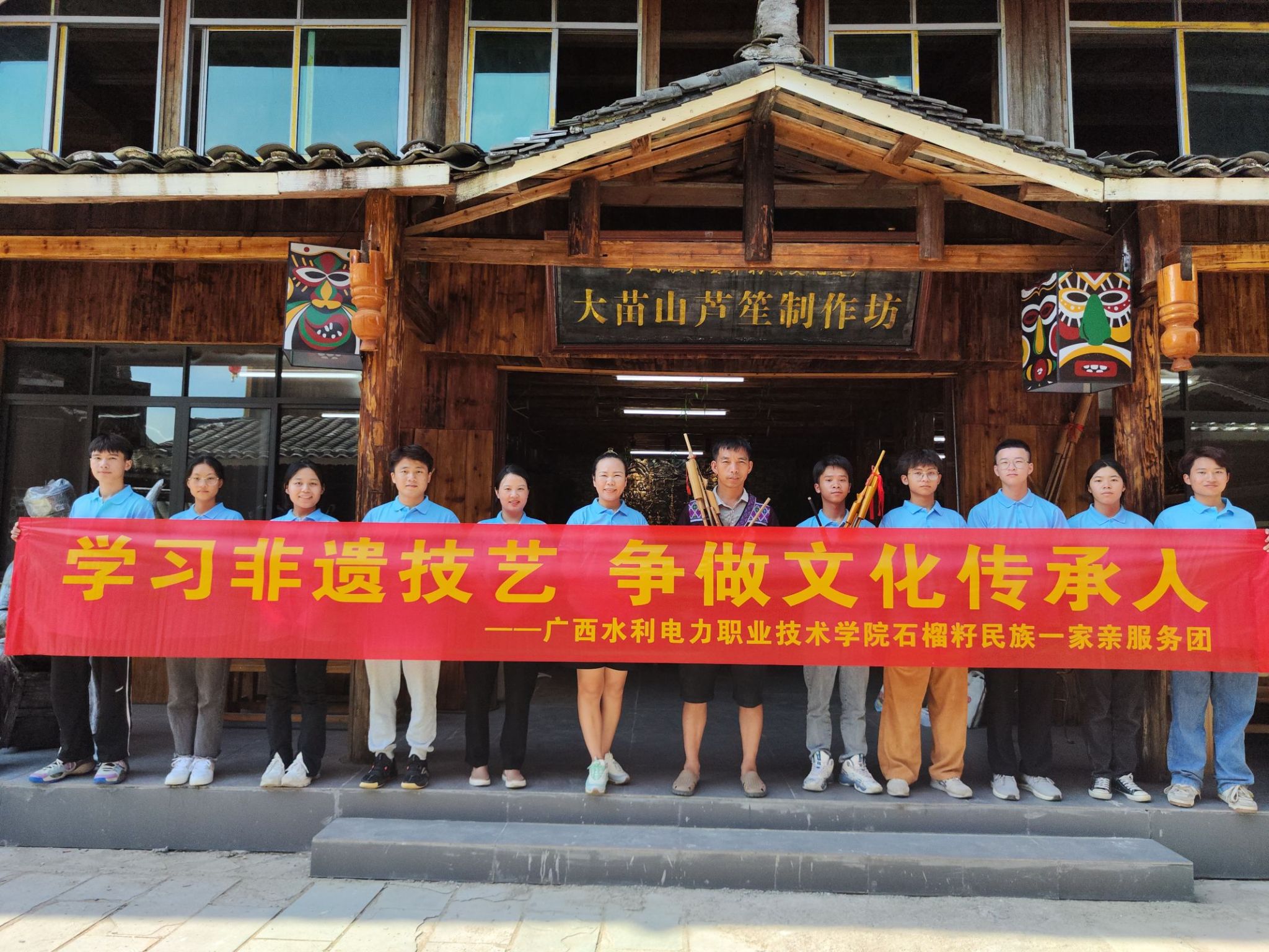 服务团成员和芦笙制作非遗传承人马老师合影留念