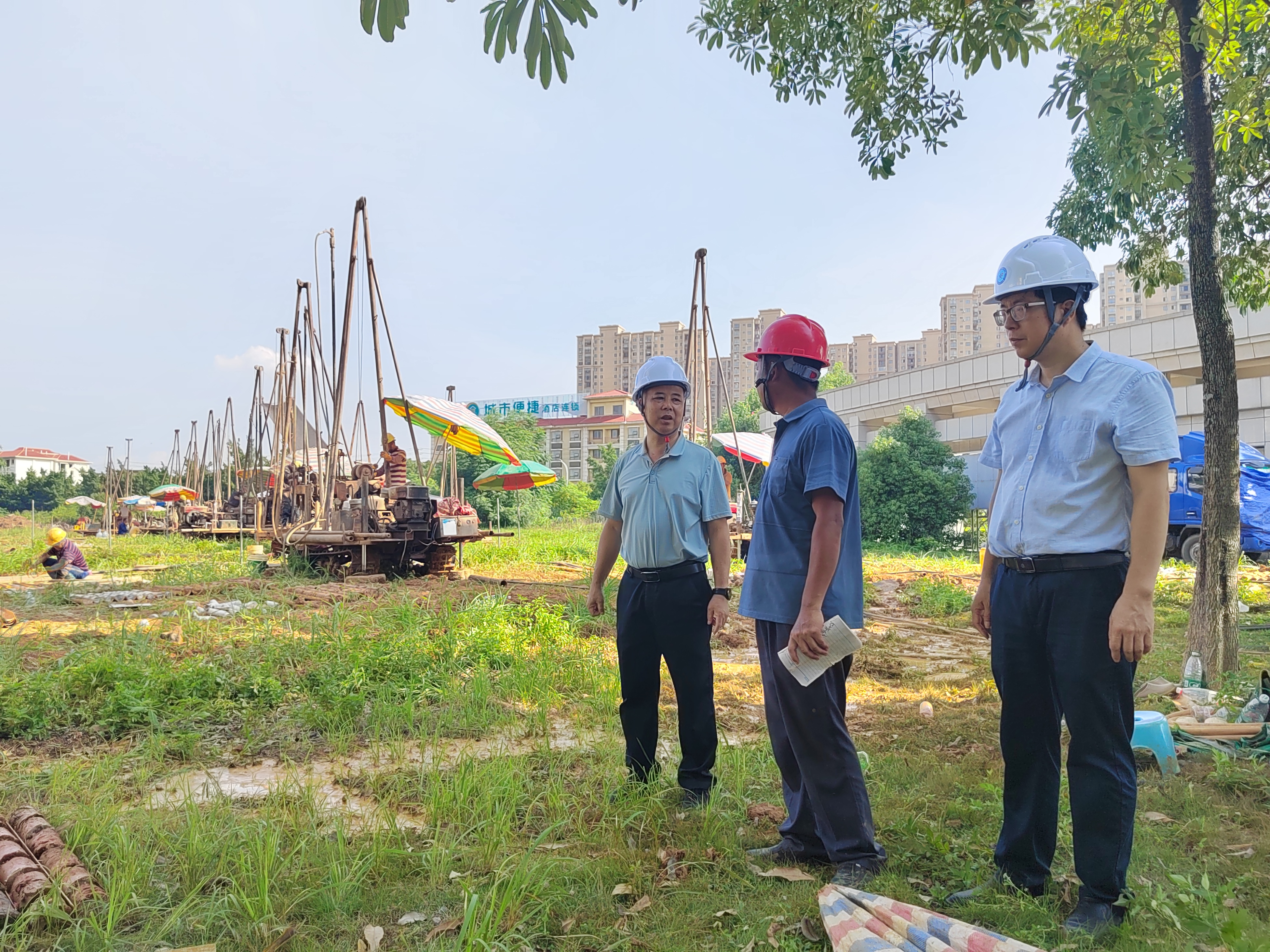 [本网讯]7月26日下午,学校副校长苏超带领后勤管理处(保卫处)、基建处等部门负责人前往里建校区,检查后勤保障、校园安全和基建工程项目情况,并慰问一线工作人员。