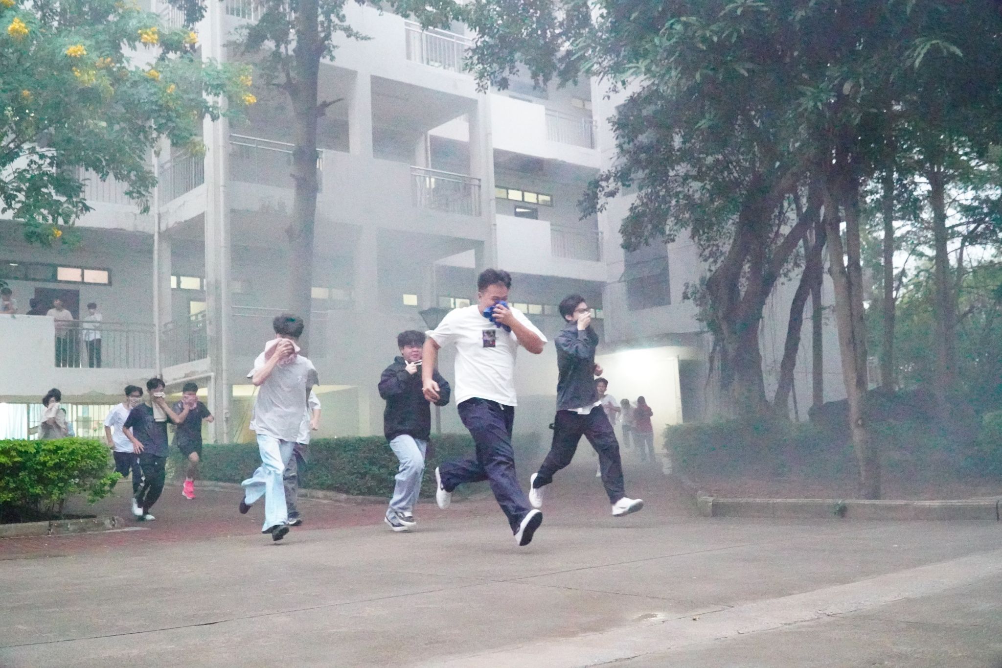 学生公寓前演练现场