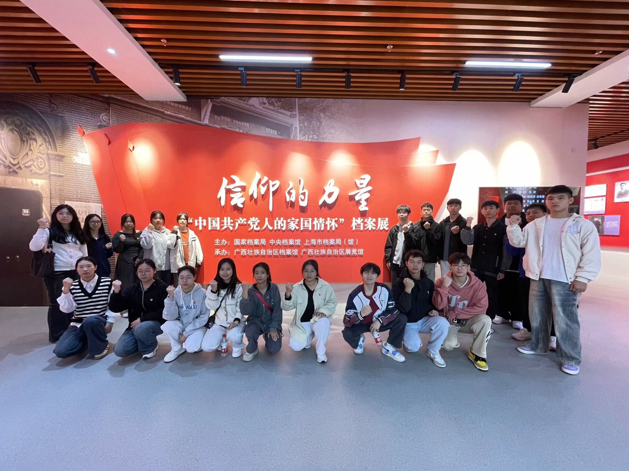 [本网讯]为深入学习党的光辉历程,传承红色基因,增强青年学子的历史使命感和社会责任感,进一步激发爱党爱国情怀,坚定理想信念,11月24日,经济管理学院团委组织23级、24级各班团支书以及组织部学生干事赴广西展览馆组织开展了“学思践悟中国共产党人精神谱系——红色基因代代传,挺膺担当励青春”主题团日活动。此次活动由学院团委书记冯文带队。