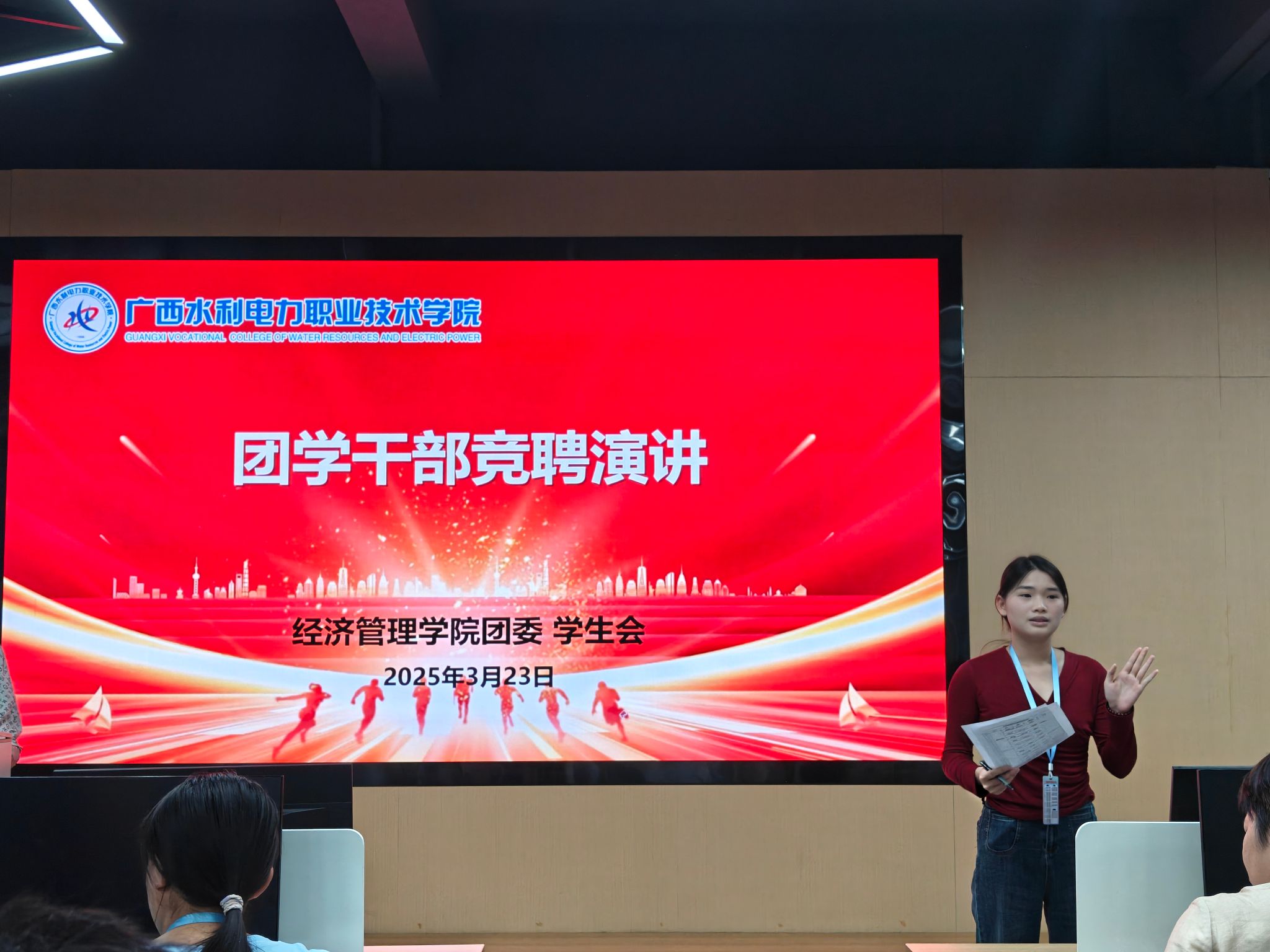 3月23日17:30,经济管理学院团委学生会团学干部竞聘演讲在经管实训楼1-2顺利举行。