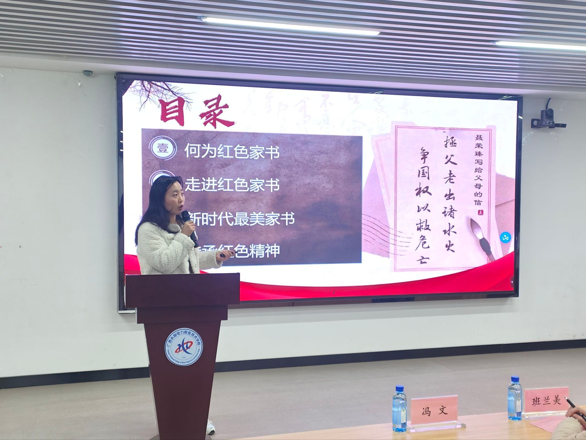 紧接着,全体人员齐唱《光荣啊,中国共青团》,激昂的旋律凝聚起磅礴的青春力量。仪式的最后,刘义蕾老师以“红色家书”为主题为新团员讲授团课,她现场诵读革命先辈的家书片段,深入解读字里行间蕴含的家国情怀与革命信仰,引导新团员从红色经典中汲取奋进力量,牢记使命、传承红色基因。
