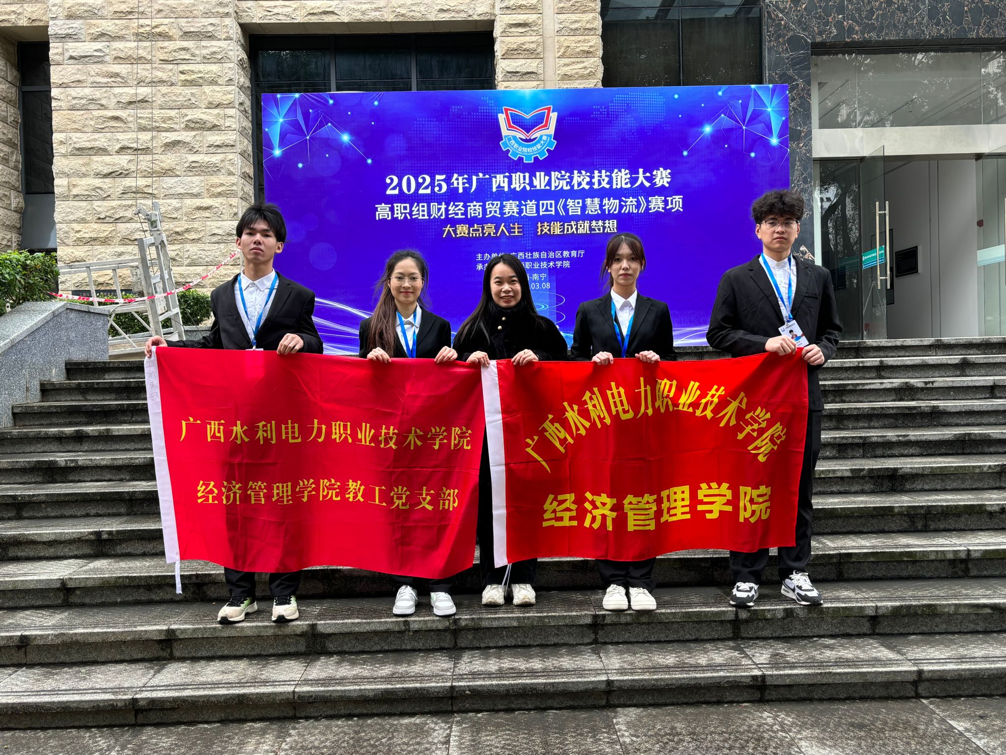 [本网讯]3月8日,学校经济管理学院参赛队参加2025年广西职业院校技能大赛高职组新闻传播赛道的《短视频创作与运营》赛项和财经商贸赛道四《智慧物流》赛项,其中,《短视频创作与运营》赛项中脱颖而出,排名第一,《智慧物流》赛项凭借出色的表现和扎实的专业技能,获得小组第二名。