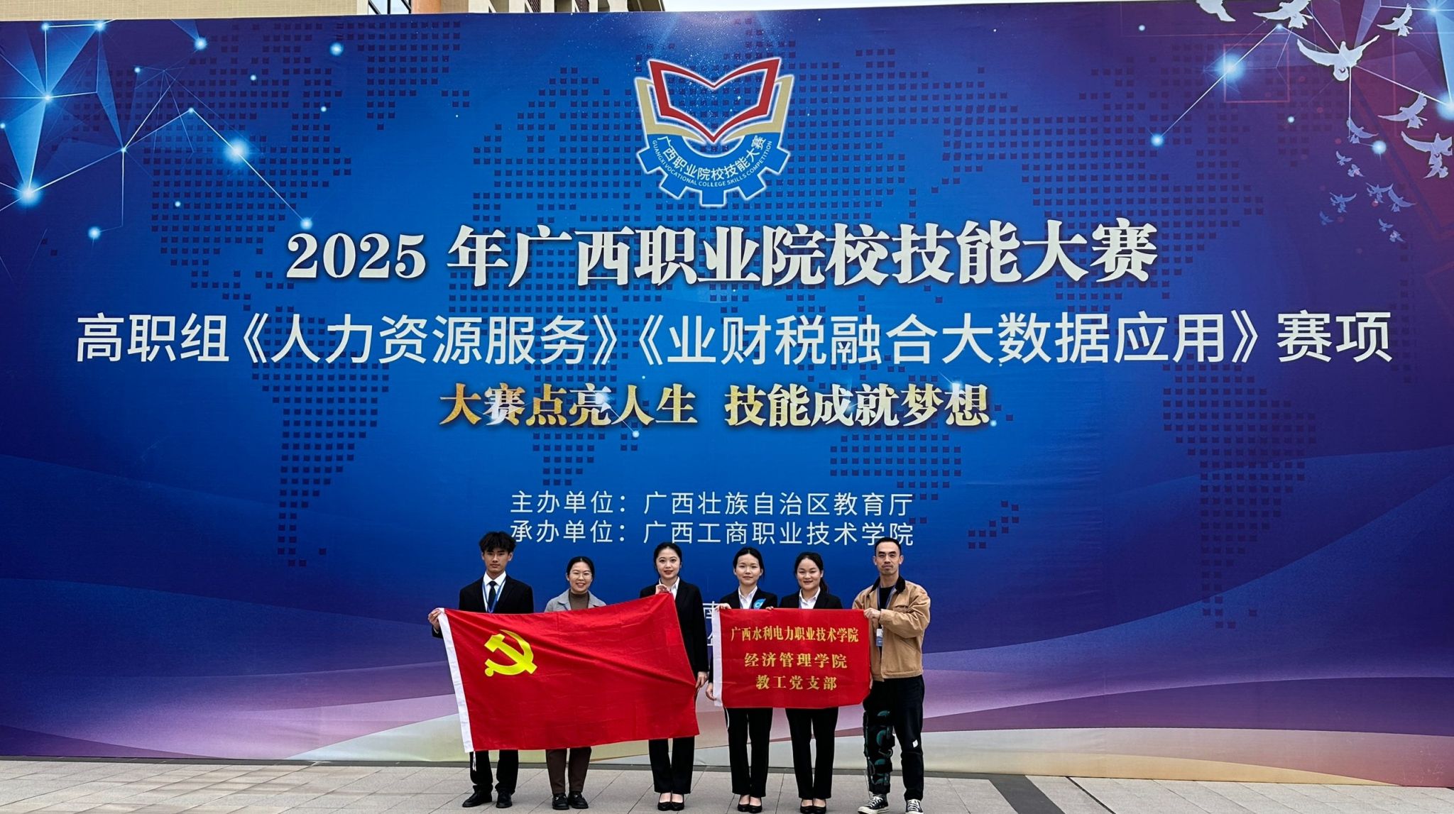 [本网讯]在刚刚公布的2025年广西职业院校技能大赛获奖名单中,学校经济管理学院参赛团队凭借扎实的专业技能、出色的团队协作和勇于创新的精神,斩获1金5银7铜的良好成绩,为学校赢得了荣誉。