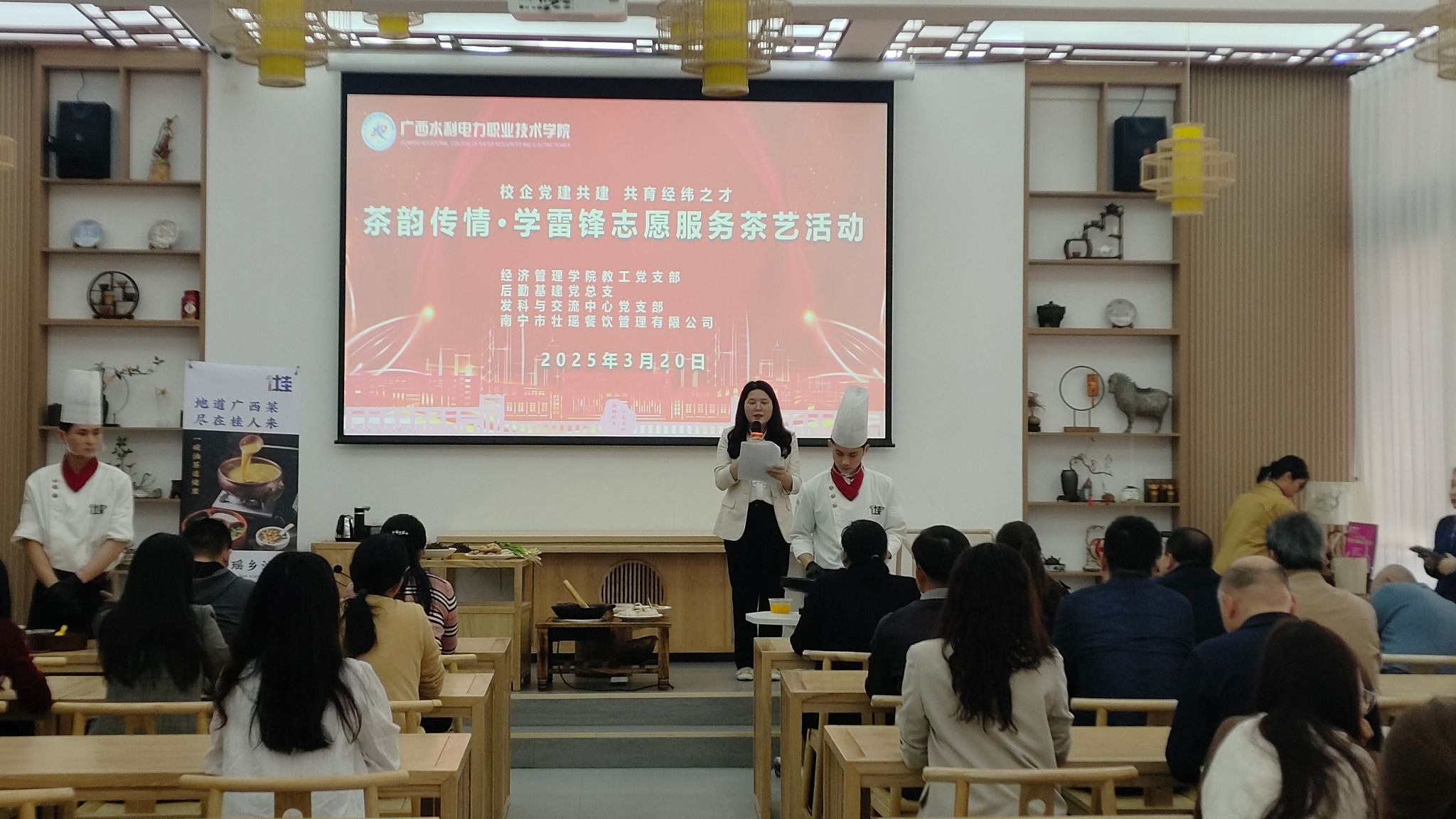 [本网讯]三月,春风拂面,万物复苏。为弘扬雷锋精神,传承中华优秀传统文化,3月20日下午,经管学院教工党支部联合后勤基建党总支、发科与交流中心党支部携手南宁市壮瑶餐饮管理有限公司在经管实训楼茶艺实训室举办“三月春风暖,茶香伴雷锋”主题党日活动。