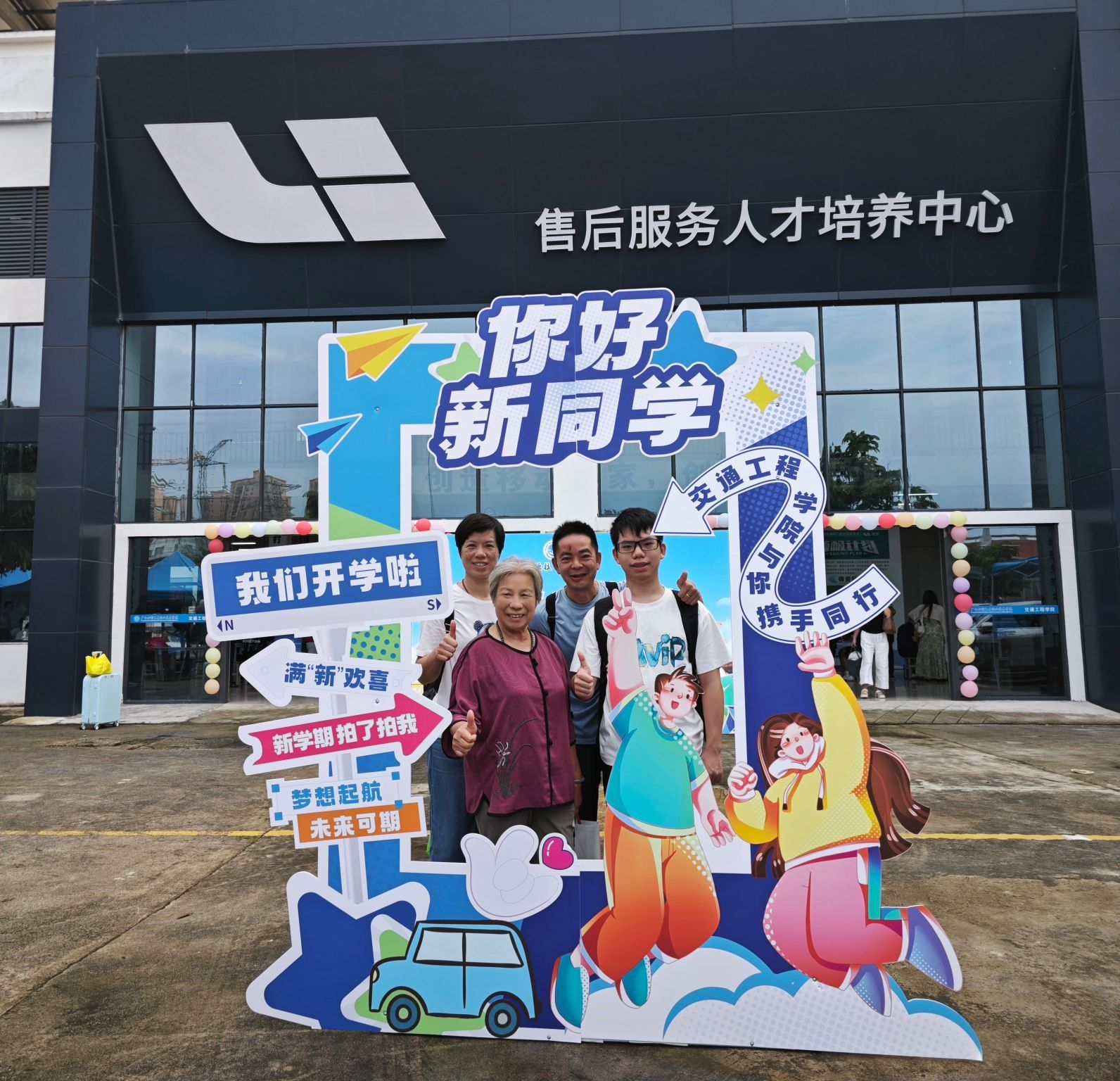 新生及家长留下与学校的第一张合影