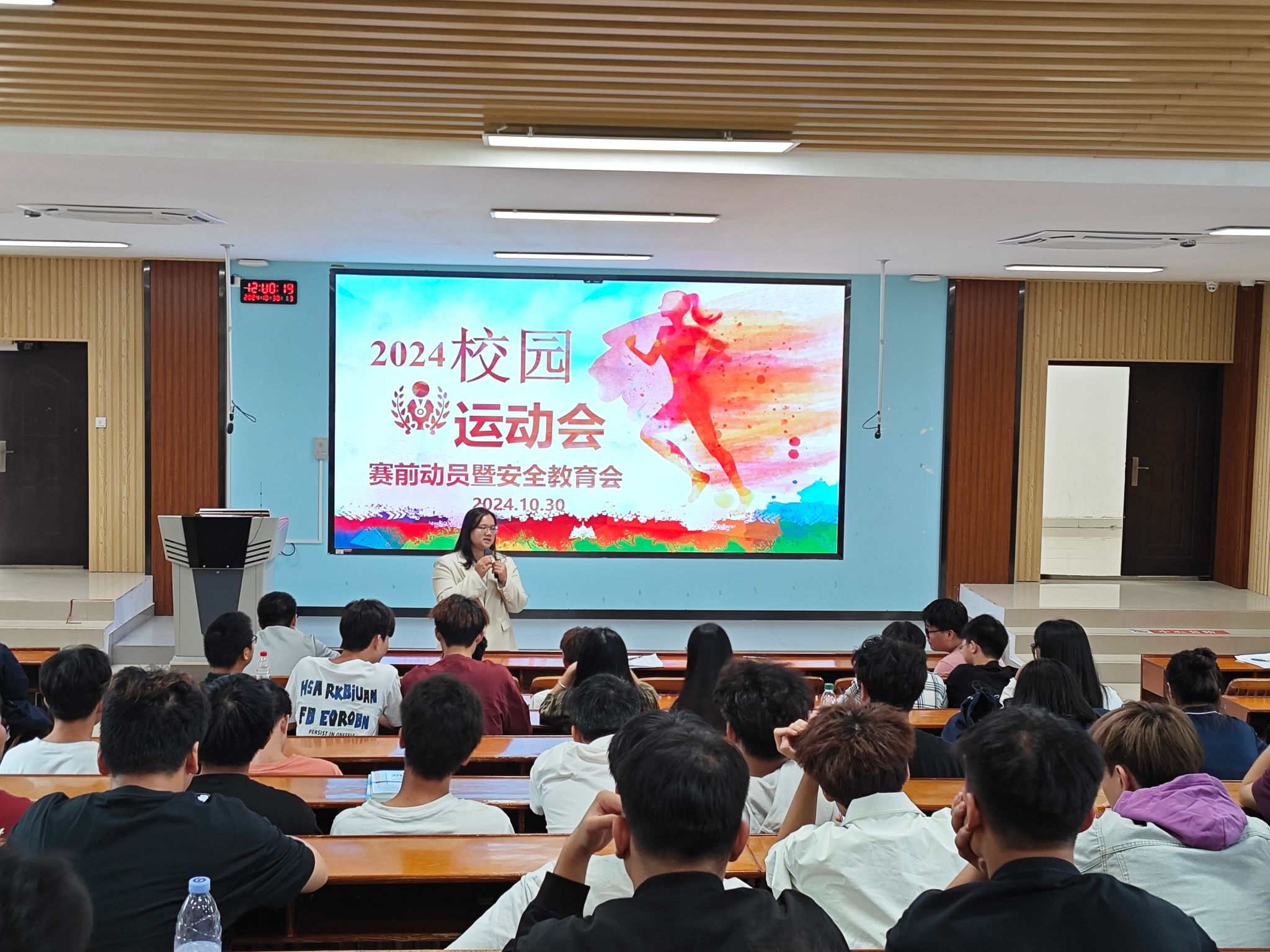 [本网讯]为了积极备战即将到来的2024年校运会,激发运动员斗志,充分调动他们体育锻炼的主动性,2024年10月30日,交通工程学院在里建校区教学楼阶梯教室202召开校运会赛前动员暨安全教育会。交通工程学院团委书记梁爱婵、团委副书记姜美婷、辅导员代表及全体运动员参加本次会议。