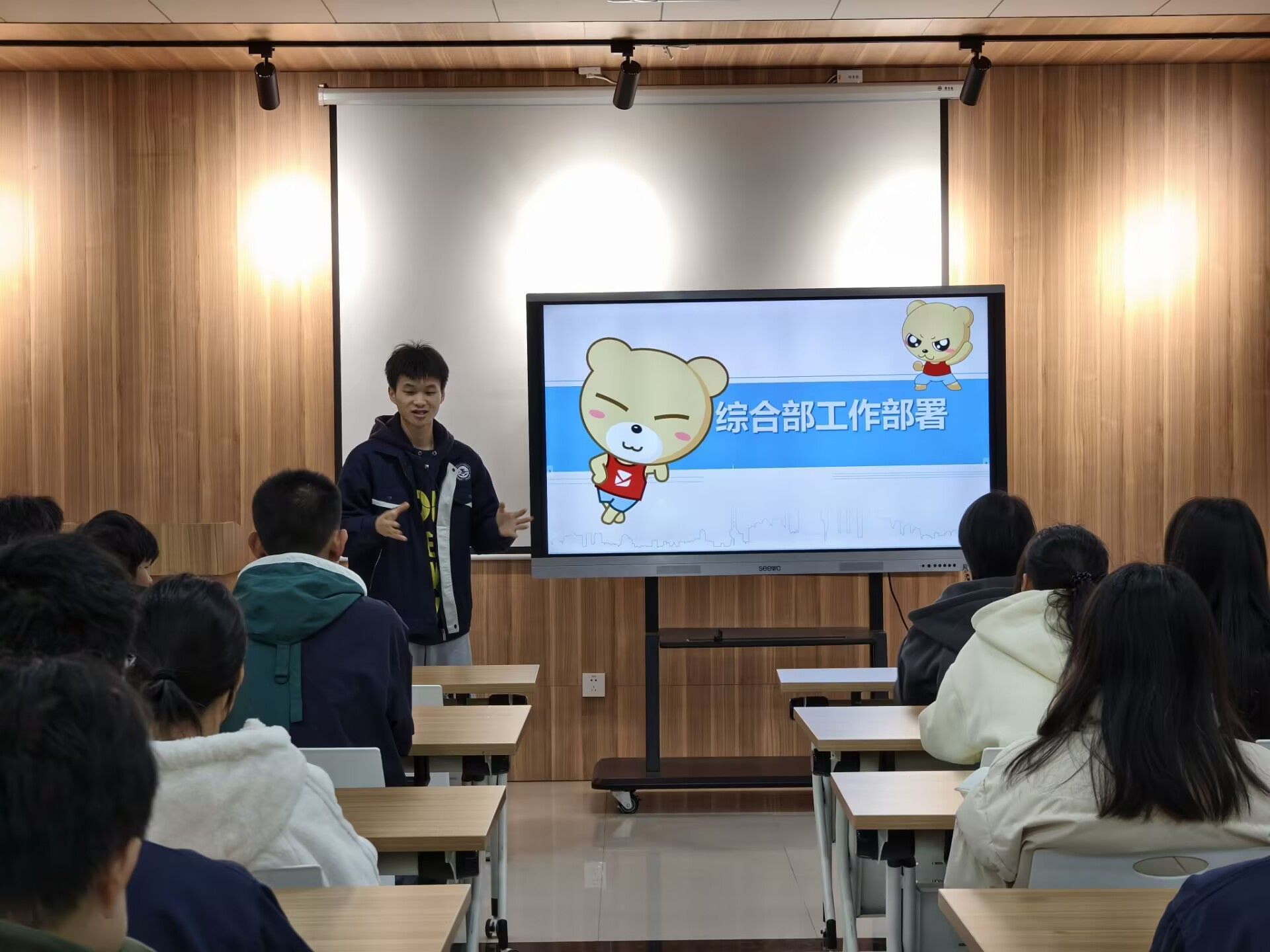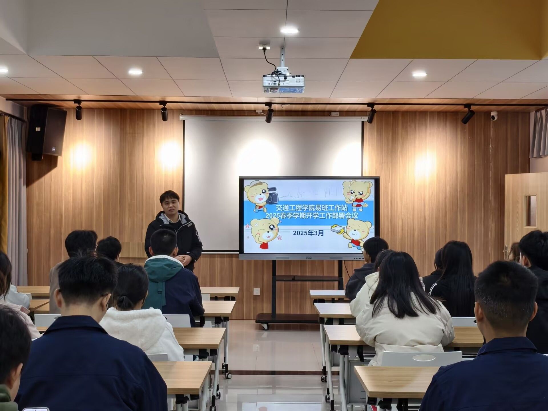 [本网讯]3月6日,交通工程学院易班学生工作站在里建校区一站式学生社区多功能厅召开新学期工作会议。会议由指导老师覃祖攀主持,易班学生工作站全体成员参加。