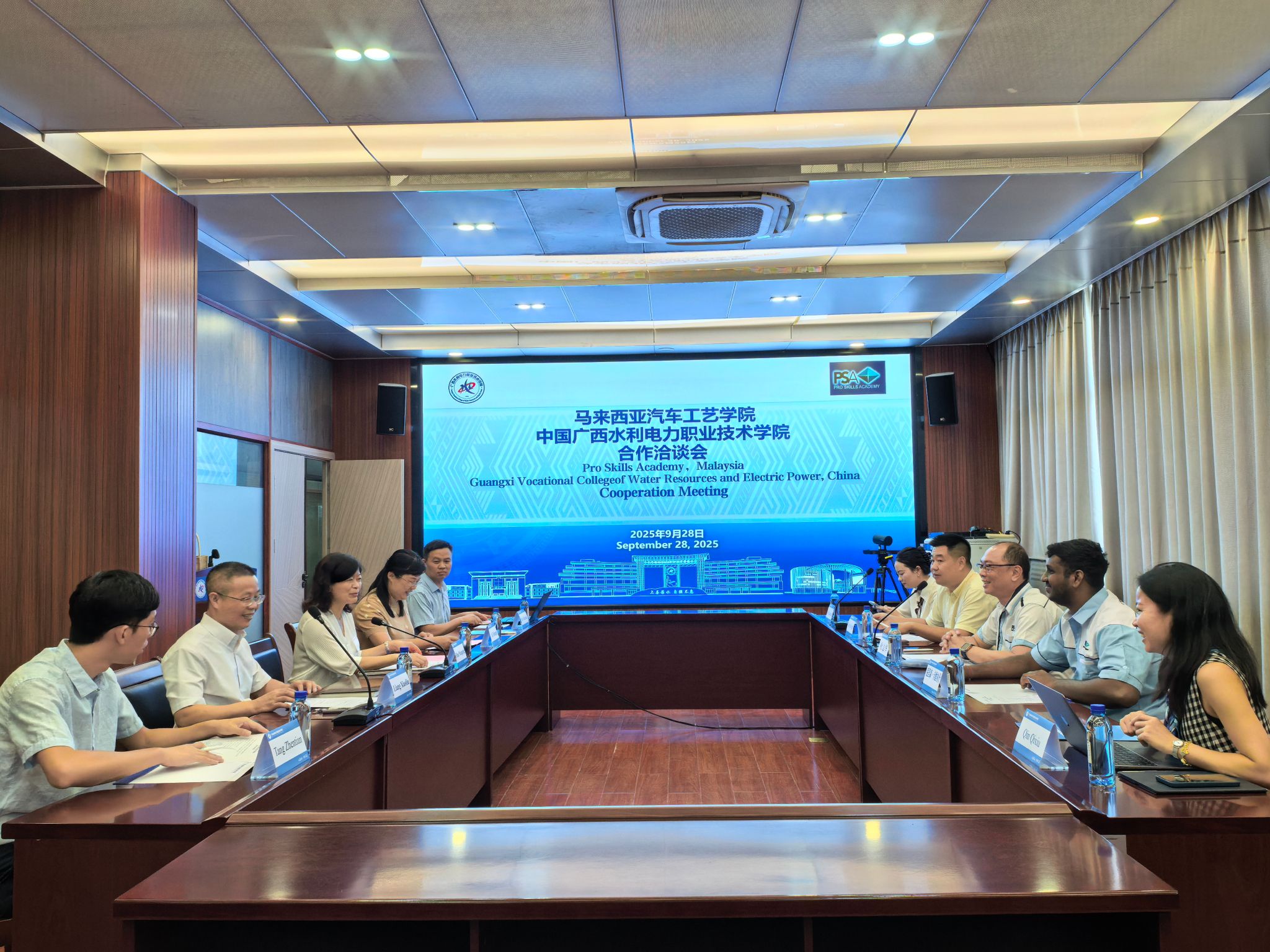 [本网讯]9月28日上午,学校与马来西亚Pro Skills Academy(马来西亚汽车工艺学院,以下简称“PSA”)的合作洽谈会在长堽校区图书馆六楼会议室顺利召开。马来西亚PSA校长TOH CHEE HOAW、AC米兰总会计师潘念萍出席洽谈会,会议由交通工程学院院长梁小流主持。