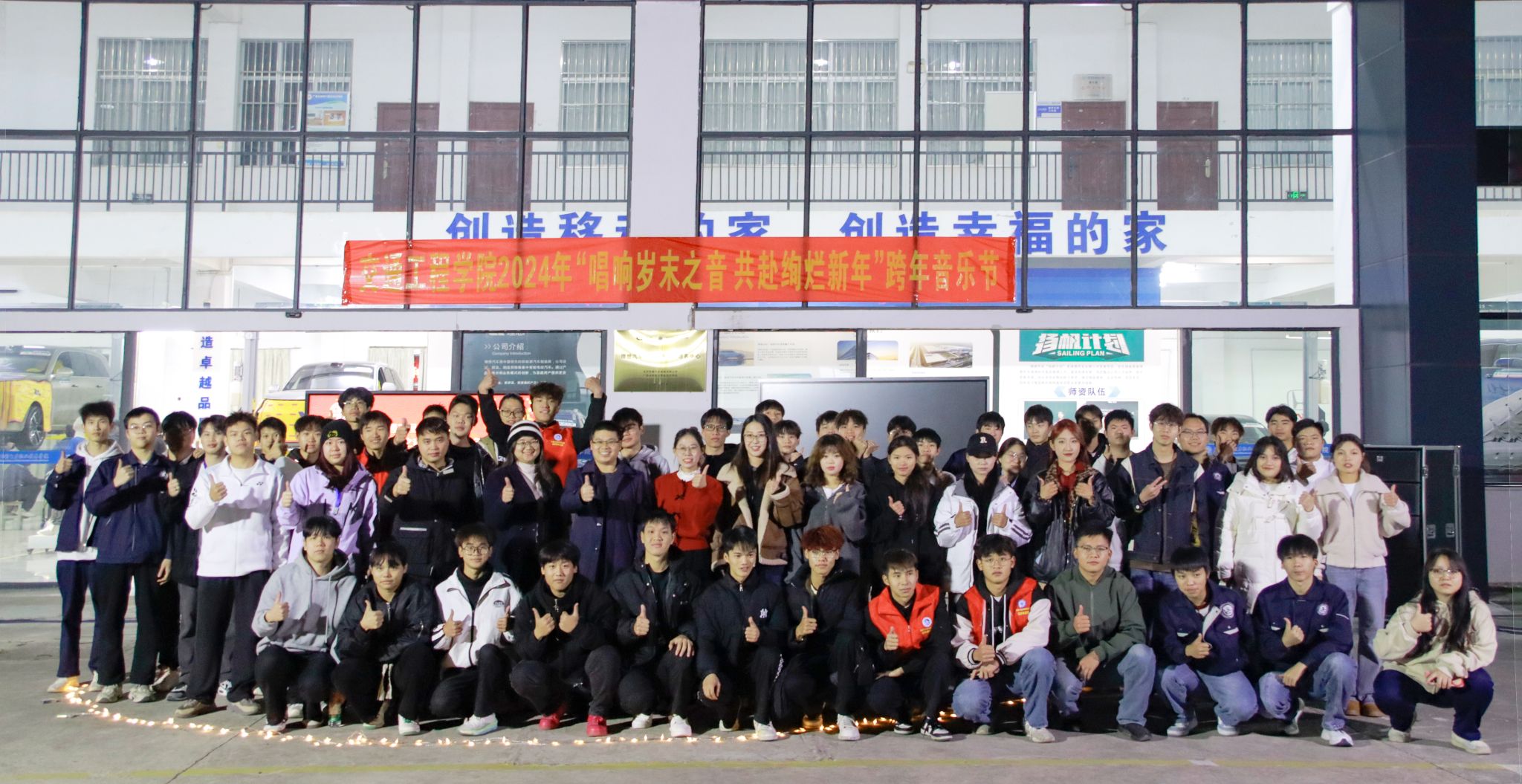 [本网讯]新年将至,万象更新。为进一步丰富校园文化生活,展现学院师生团结创新、锐意进取、蓬勃向上的精神风貌,12月29日晚,交通工程学院在里建校区理想汽车楼前举办2024年“唱响岁末之音·共赴绚烂新年”跨年音乐节,交通工程学院党总支书记张海明、团委书记梁爱婵及辅导员代表、学院全体在校学生参加。
