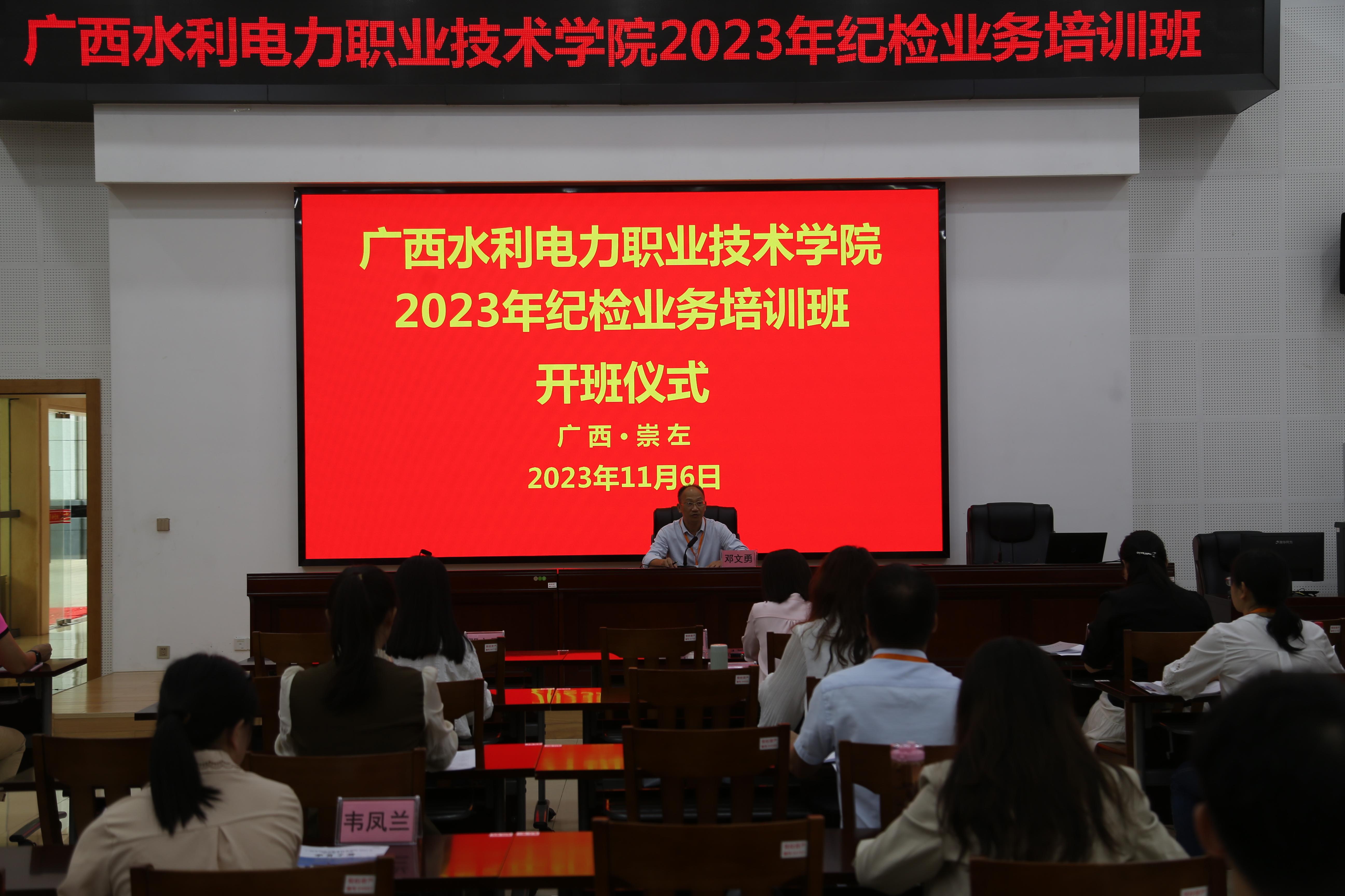 [本网讯]11月6日,学校2023年纪检业务培训班在崇左市委党校正式开班。学校纪委书记邓文勇出席开班仪式并讲话。