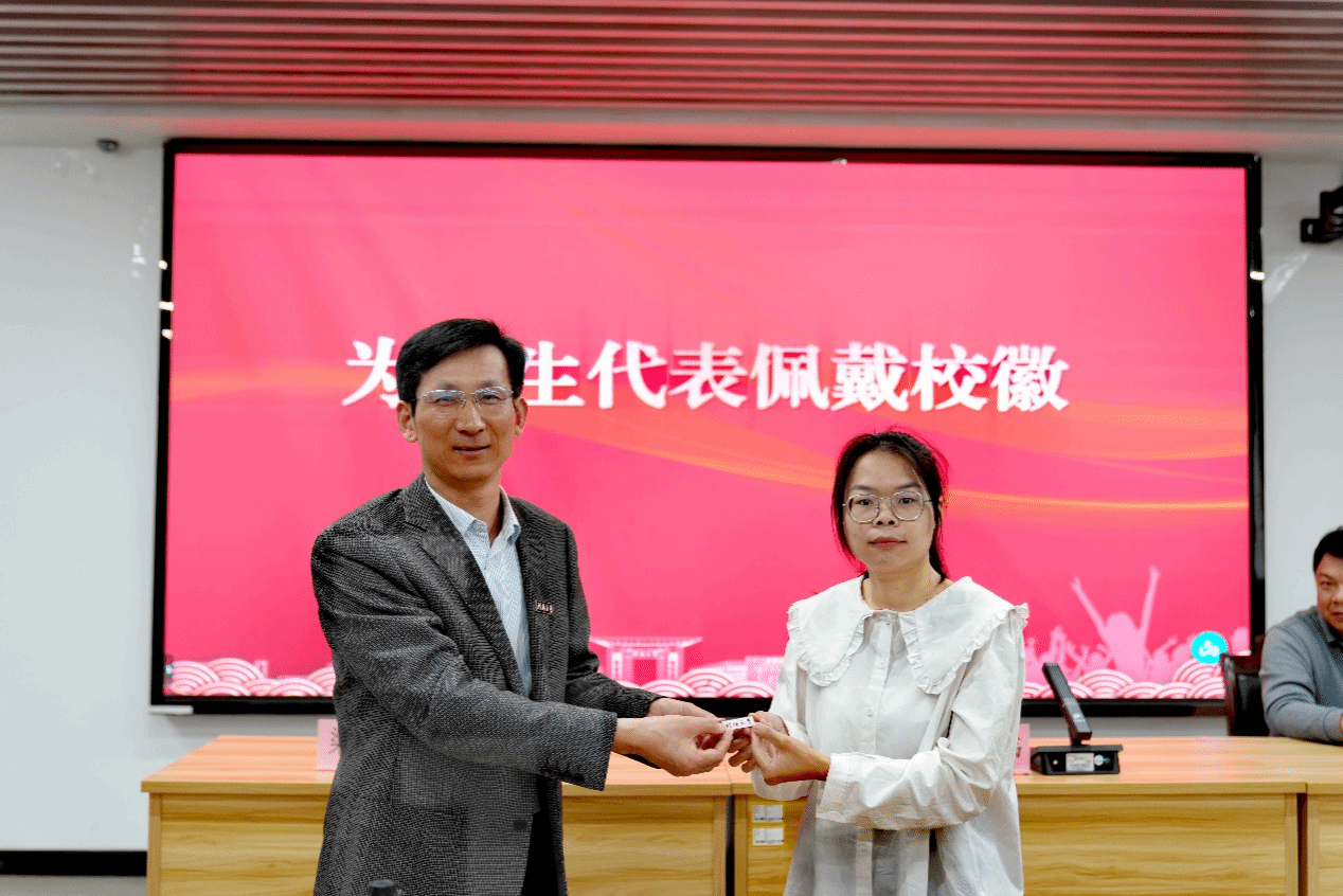 随后,于伟代表河海大学,郑重地将一枚承载着荣誉与责任的河海大学校徽授予新生代表,这标志着他们正式成为了河海大家庭的一员。