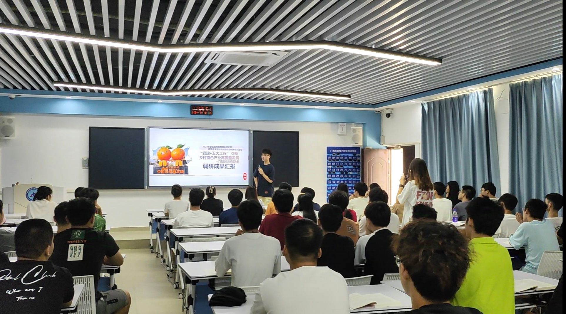 党的二十届三中全会提出,壮大县域富民产业,构建多元化食物供给体系,培育乡村新产业新业态。调研小组特别关注了当地的农业产业,先后来到杨李村、太山农业产业示范园、苏宫村、南国乡村农房建筑科技博物馆、八桥村乐山屯、双桥镇人民政府等,了解沃柑产业现状和各乡村的发展建设情况。通过与村民、专业人员的交流与实地考察,同学们不仅学习到了先进的农业生产和种植技巧,也深刻认识到发展农业新质生产力,构建农业产业现代化体系,科技创新在引领乡村全面振兴中的关键作用。为了将调研内容转化为具体的行动和成果,调研小组依托领航学院、一站式学生社区服务平台,深入各班级进行调研成果汇报宣讲,激发青年大学生利用所学,发挥专业优势助力农业农村现代化建设,贡献自己的青春力量。