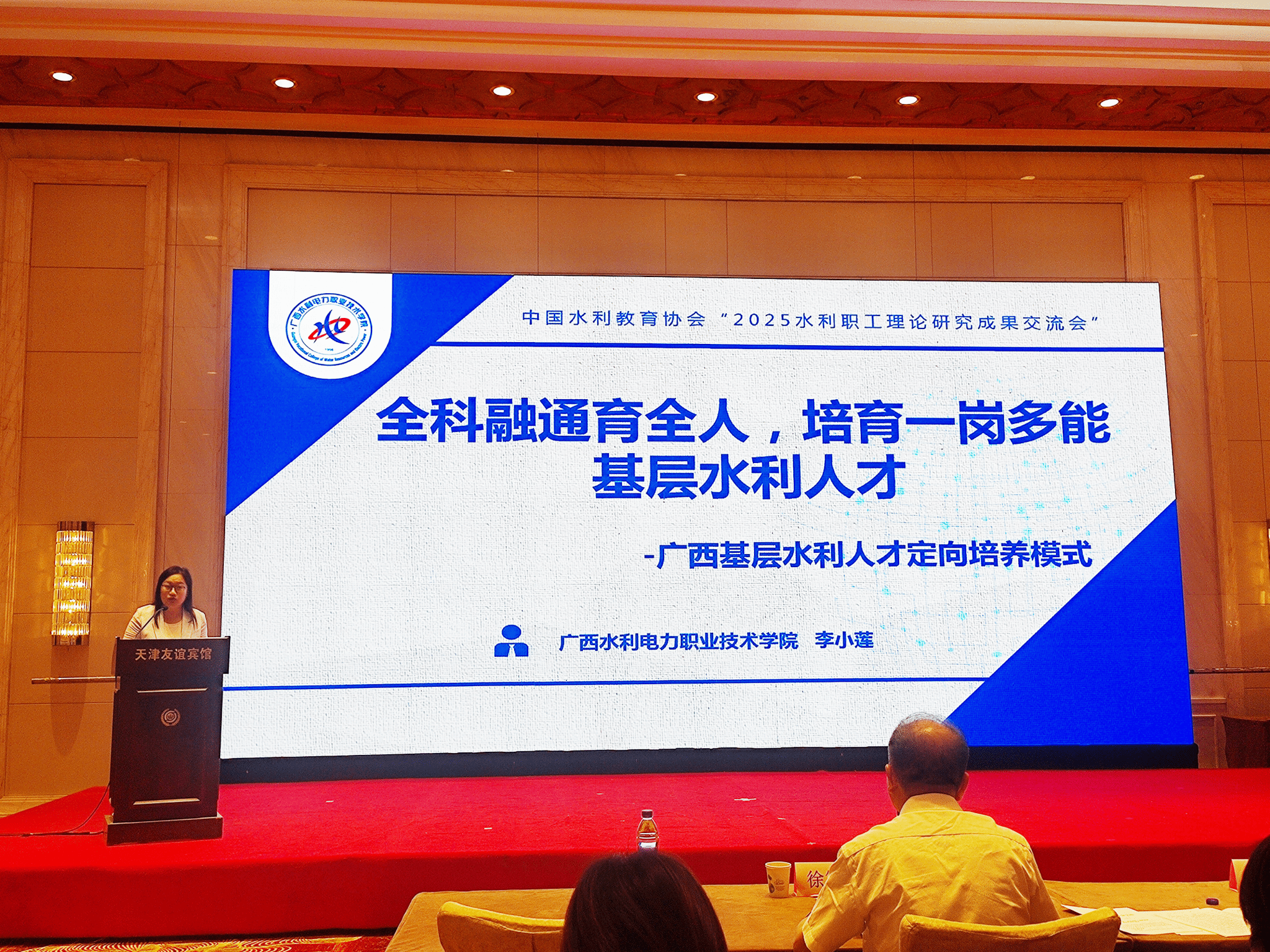 在成果交流环节,李小莲分享了题为《全科融通育全人,培育一岗多能基层水利人才》人才培养案例。她从案例实施背景、主要做法、成果成效、总结经验、推广应用五个方面展开分享,重点介绍了学校构建“主课堂+创新课堂+乡土课堂+局长课堂+雏鹰课堂”的“五堂联动”课程体系,拓展学生知识、技能、素养的厚度、宽度,提高人才培养质量;同时,创新建立了“顶层直通基层”的协调机制,特别是通过五厅联合“三定三免”(定向协议、定向培养、定向分配、免学费、免住宿费、免书费)基层水利人才培养模式,为少数民族艰苦地区基层水利人才培养贡献广西经验。