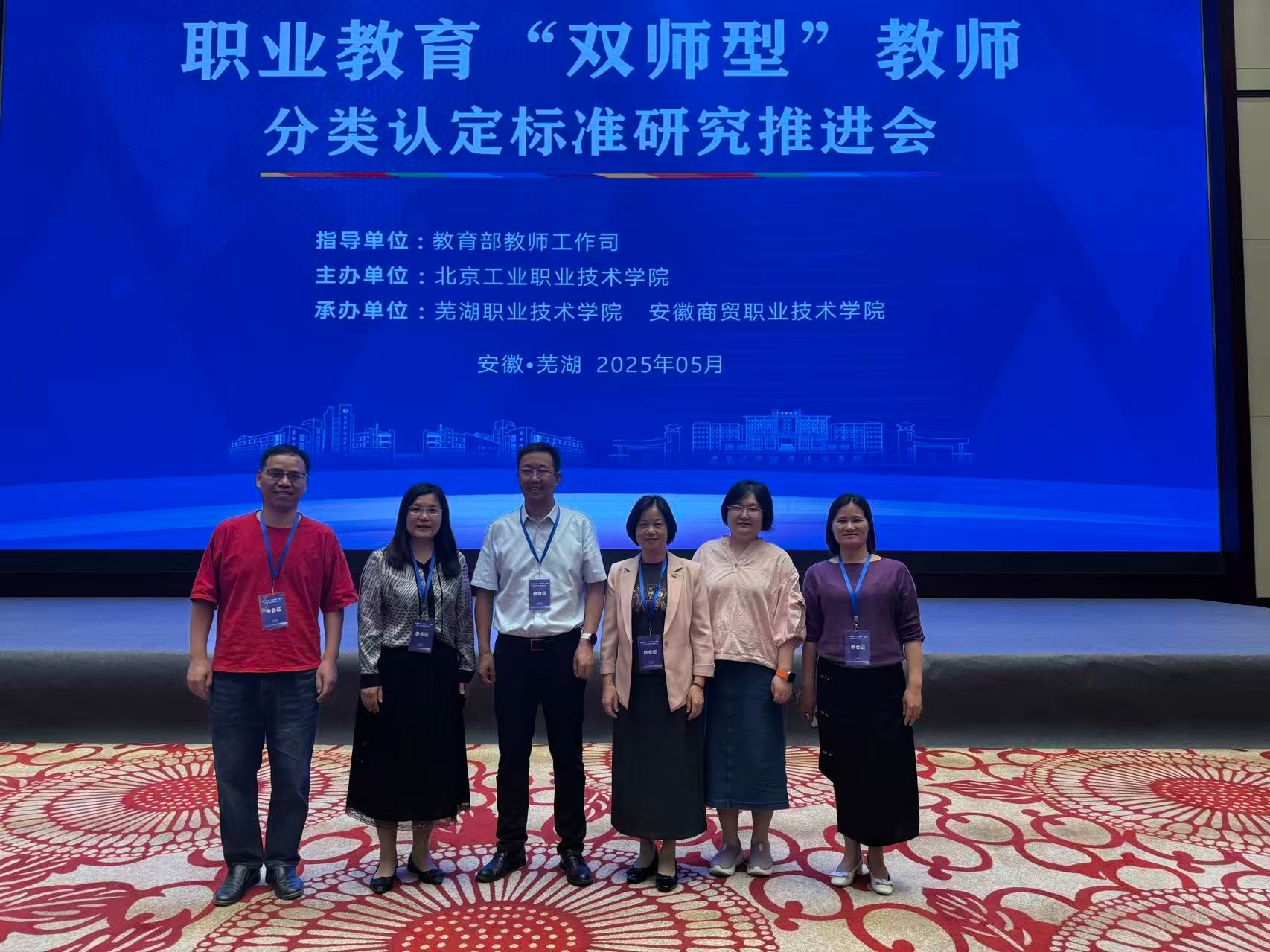 [本网讯]5月25-27日,学校水利工程学院院长、国家级职业教育教师创新团队负责人吴美琼和人事处(教师发展中心)师资科科长凌春香赴安徽芜湖参加职业教育“双师型”教师分类认定标准研制工作推进会。本次会议在教育部教师工作司指导下,由北京工业职业技术学院主办,芜湖职业技术学院、安徽商贸职业技术学院承办。教育部教师工作司四级调研员贾炎龙,以及来自全国24个省、直辖市、自治区的129个职业院校代表和部分企业代表共240余人齐聚一堂,共同探讨“双师型”教师分类认定标准的研制工作。