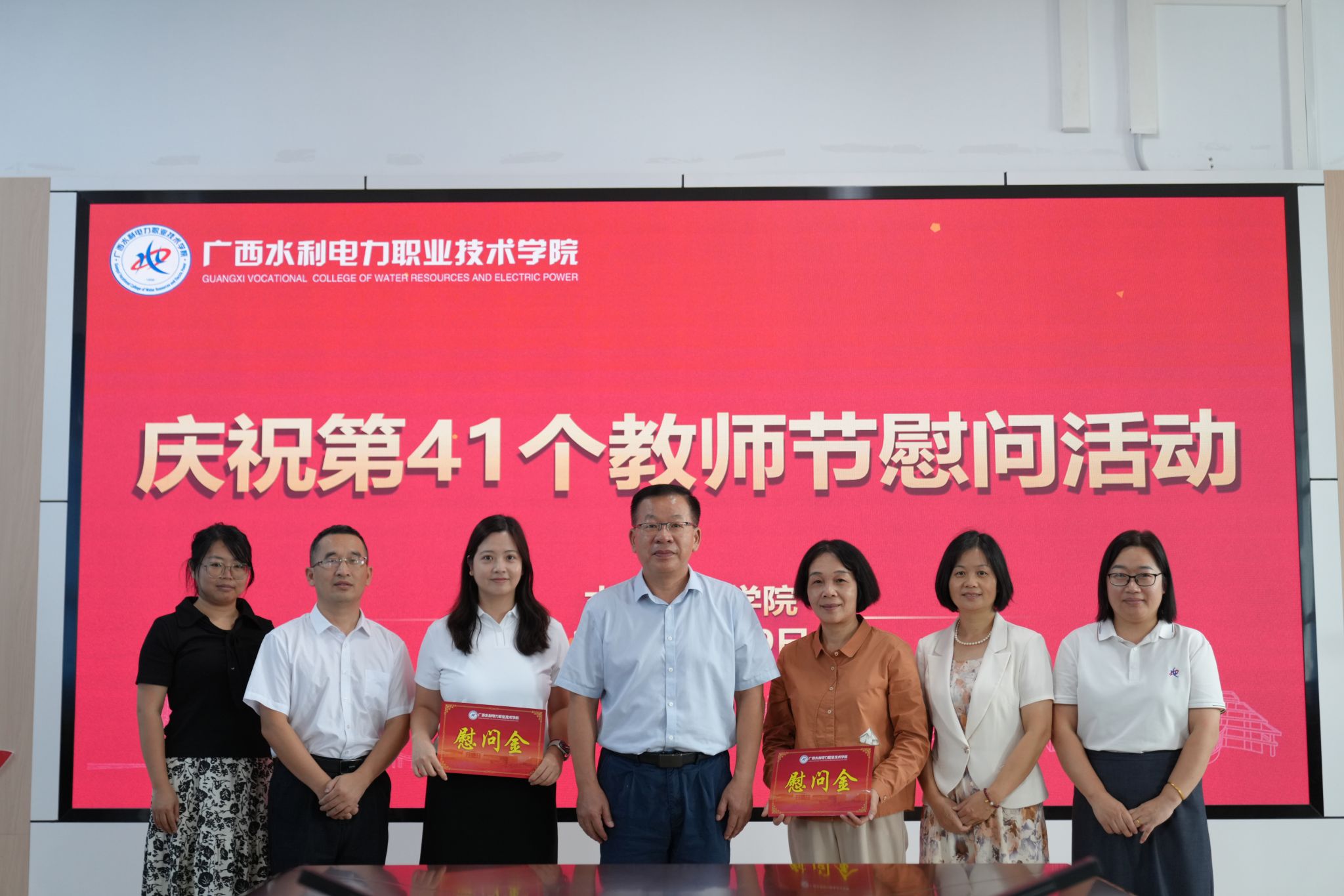 学校党委书记李林走访慰问了水利工程学院和马克思主义学院教师代表,并与学院领导、教师代表进行座谈。他充分肯定了两个学院在教育教学、师生竞赛和社会服务等方面取得的可喜成绩,鼓励老师们向优秀教师学习,传承弘扬教育家精神,发挥传帮带作用,以老带新搭建校企合作与科研服务平台,助力学校高质量发展、培养水利高技术技能人才。