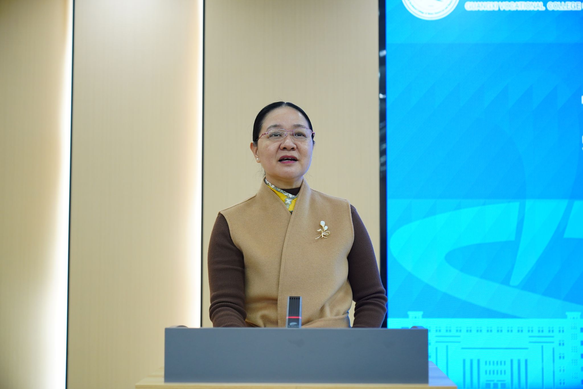 莫海燕紧扣学校第二次党员代表大会精神及“建国双、办职本”核心目标,分析了加强高水平双师队伍建设的紧迫性,并强调了“三大”工作室建设对教师队伍的牵引带动作用。她从坚持差异定位、深刻认识问题、协同汇聚合力三个方面提出要求,希望“三大”工作室扎实做好建设,推动其发展迈上高质量新台阶。