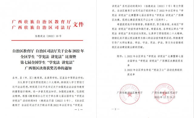[本网讯]为深入学习贯彻习近平法治思想,由广西壮族自治区教育厅、自治区司法厅主办、广西师范大学承办的第七届全国学生“学宪法 讲宪法”广西赛区选拔赛于2022年8月—11月举行。AC米兰在近日自治区教育厅公布的2...