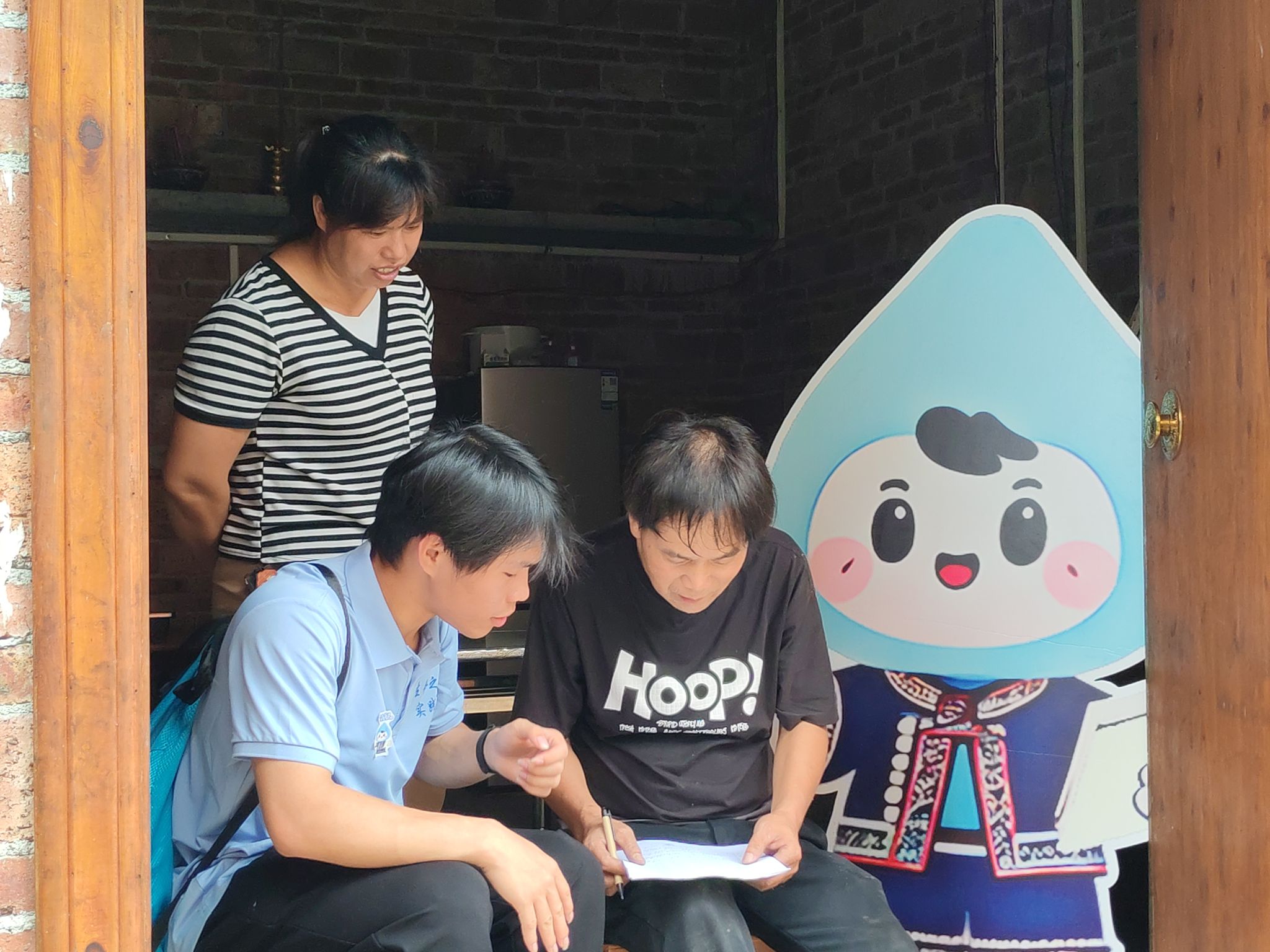 随后,实践团成员分组入户走访,带着精心设计的“阿水哥”向村民发放宣传手册,耐心讲解水法水规和节水护水知识,他们用通俗易懂的语言和生活实例,帮助村民理解政策内容,增强法治意识。此外,实践团还通过净水小实验帮助村里孩子们增强节水护水意识。