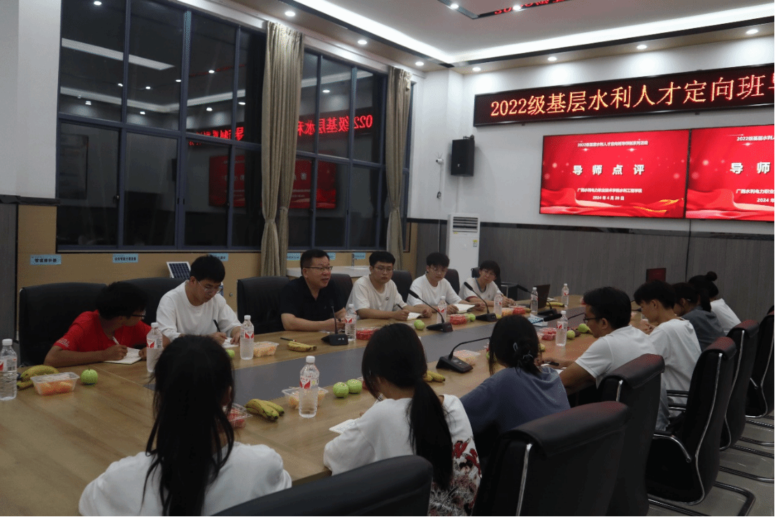 [本网讯]为全面贯彻党的教育方针,进一步提高基层水利人才专业综合素养,全力落实导师制培养制度,4月28日晚,学校校长李林以导师的身份,在里建校区组织2022级基层水利人才定向班学生召开防汛抗洪主题研讨会,水利水电工程智能管理教学团队负责人韦庆华陪同参会。